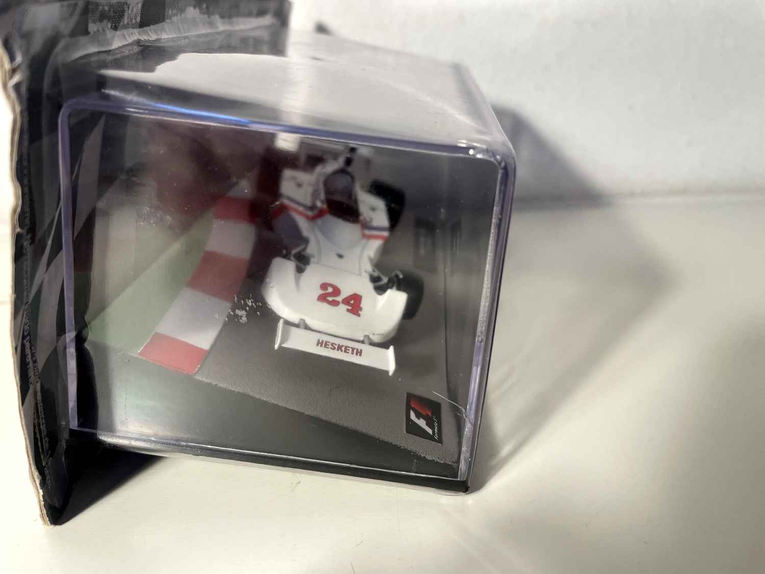 Modellauto Wäissen Hesketh 308B Nummer 24 vun 1975 (Formel 1)