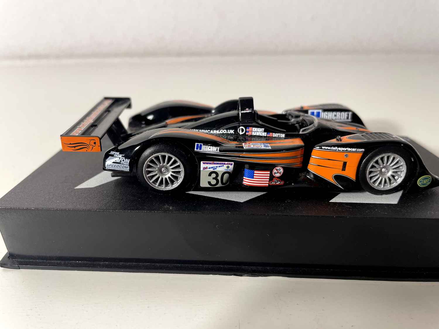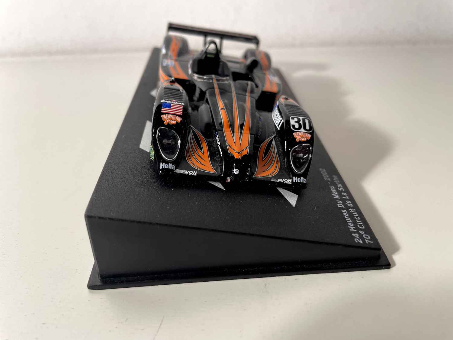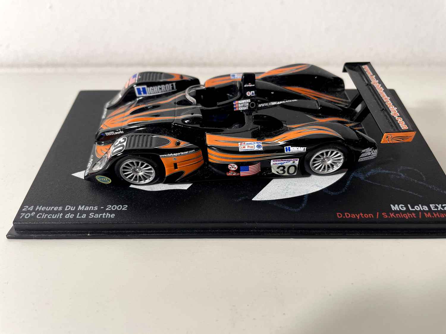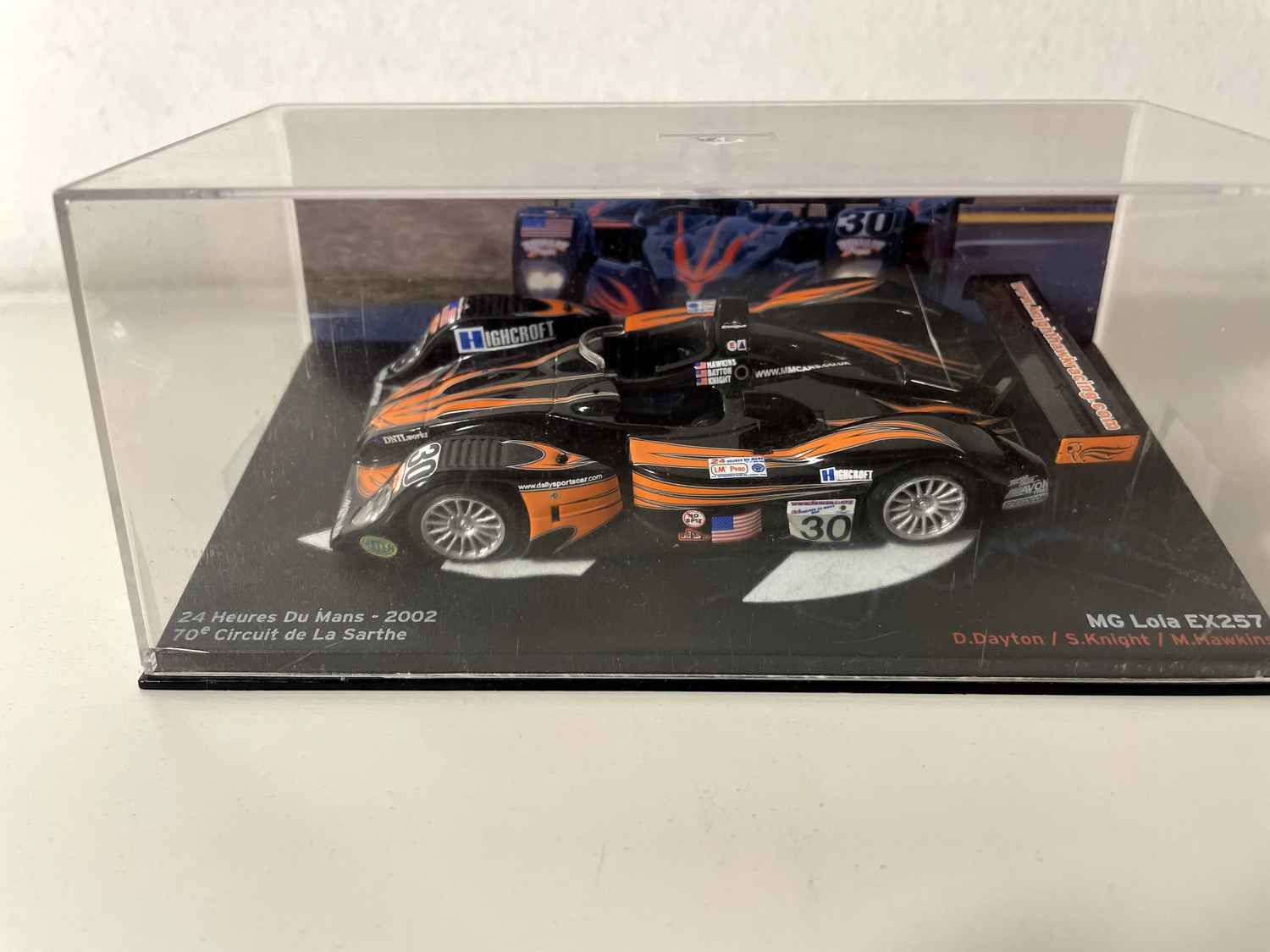 Modellauto MG Lola EX257 schwaarz an orange Nummer 30 - 24 Stonne vum Le Mans 2002