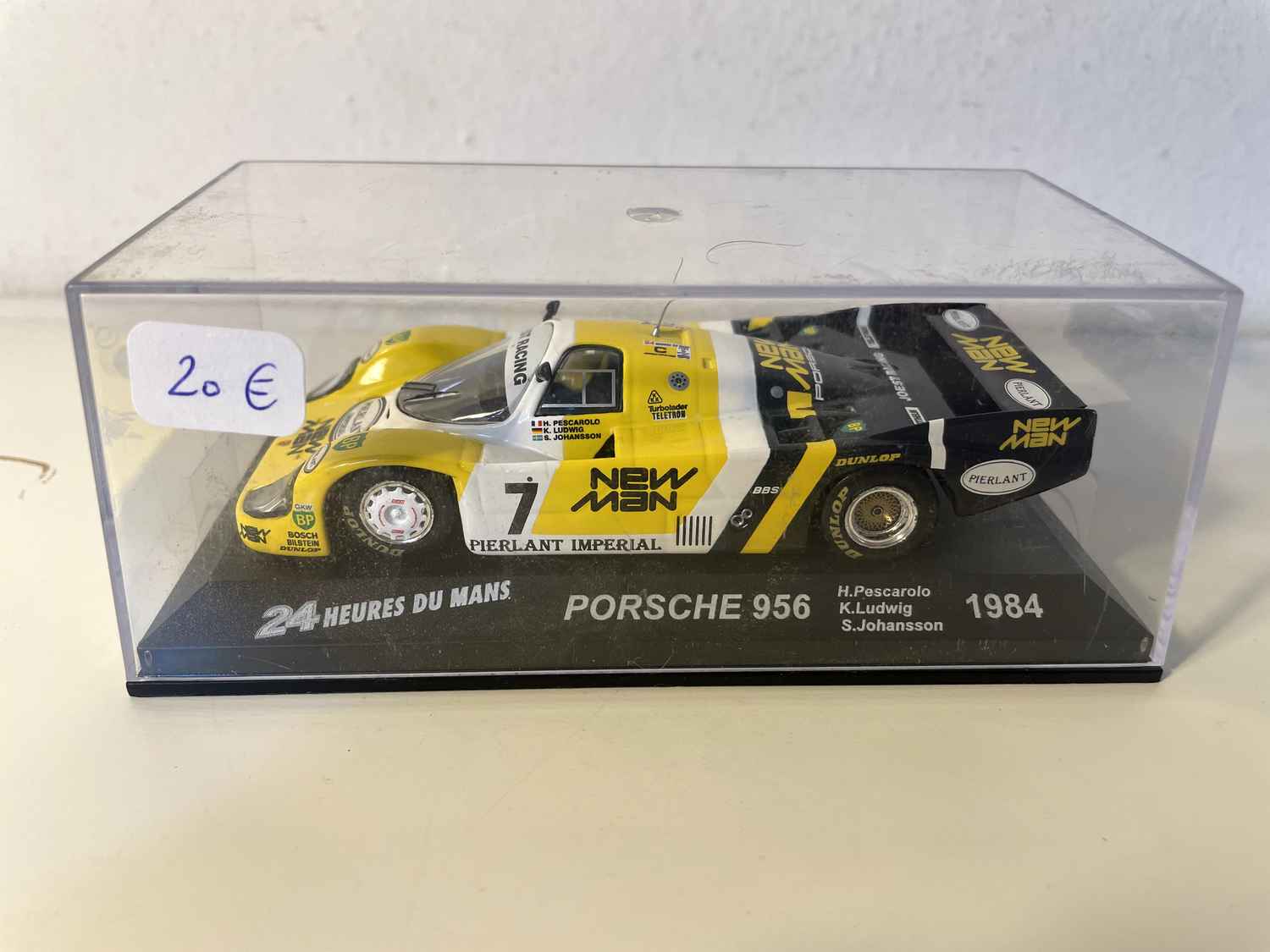 De Porsche 956 , deen 1982 entwéckelt gouf, huet eng Revolutioun an der Welt vun de Sportprototypen markéiert. Speziell fir d'Weltmeeschterschaft am Ausdauersport entwéckelt, ass hien dem legendäre 936 mat bemierkenswäerten techneschen Innovatiounen opgeféiert. Säi 2,6-Liter Turbomotor mat 6-Sechszylinder huet iwwer 620 PS entwéckelt, während säi Monocoque-Chassis aus Aluminium a Kuelestoff aussergewéinlech Steifheet gebueden huet.