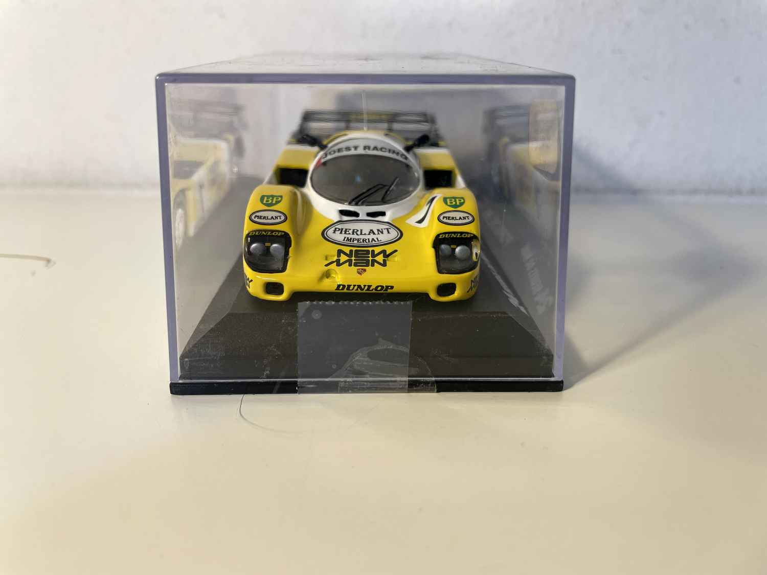 Dës Porsche 956 Miniatur , Nummer 7, reproduzéiert trei ee vun de kultigsten Autoen vun de 24 Stonne vu Le Mans . Mat senger charakteristescher schwaarz-gieler Lackéierung vun der Editioun 1984 fängt dës Replik d'Essenz vun enger gëllener Ära vum Ausdauerrennen un.