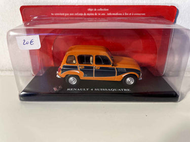Die Versioun Suissaquatre illustéiert perfekt den internationale Dimension, déi d'Renault 4L séier erlangt huet. Am Schwäiz ass dëse Modell e kulturelle Phänomen deen d'Zuel vu sengem Status als Auto iwwersteigt. D'Faarwen orange an donkelbläi vun dëser spezieller Versioun erënneren un d'Livrée, déi vun e puer ëffentleche Servicer gebraucht gëtt a weisen d'Adaptatioun vun Renault un d'lokalen Märkter.