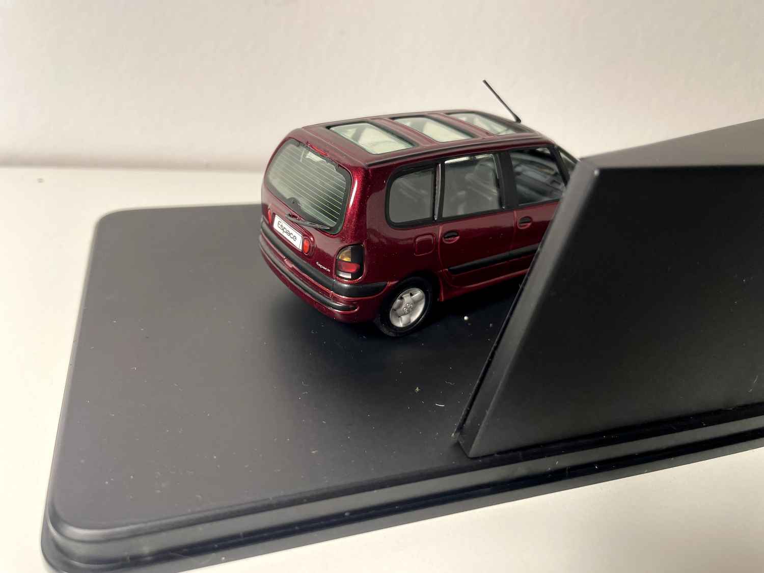 Dieser Renault Espace 3 bordeaux ass e richtege Kollektionselement, dat d'Evolutioun vum franséische Auto-Design um Iwwergang vum Joerhonnert dokumentéiert. Seng elegant bordeaux Faarf an seng respektéiert Proportiounen maachen dës Miniatur zu engem Mëssäin fir all Autoen Enthusiast.