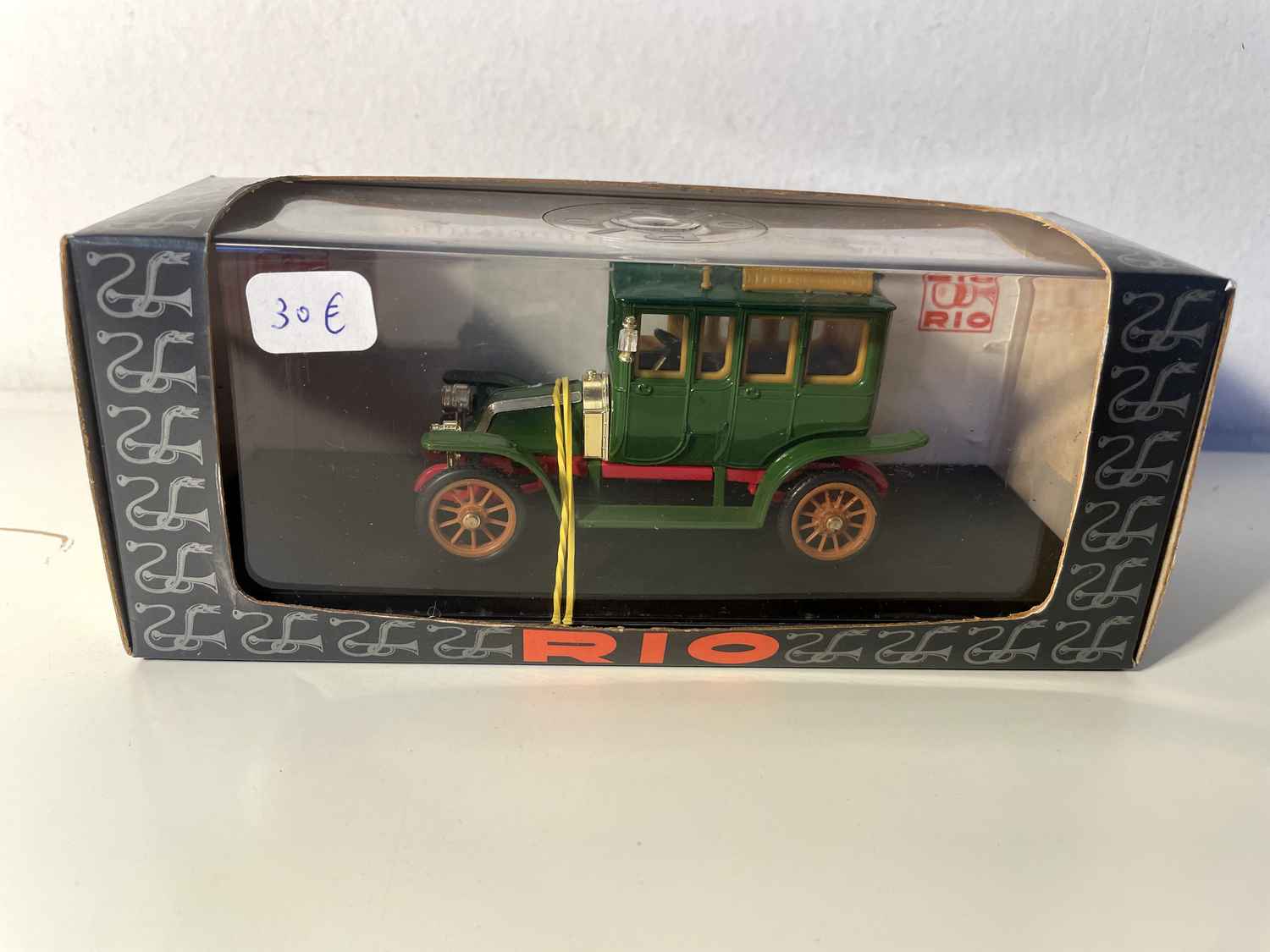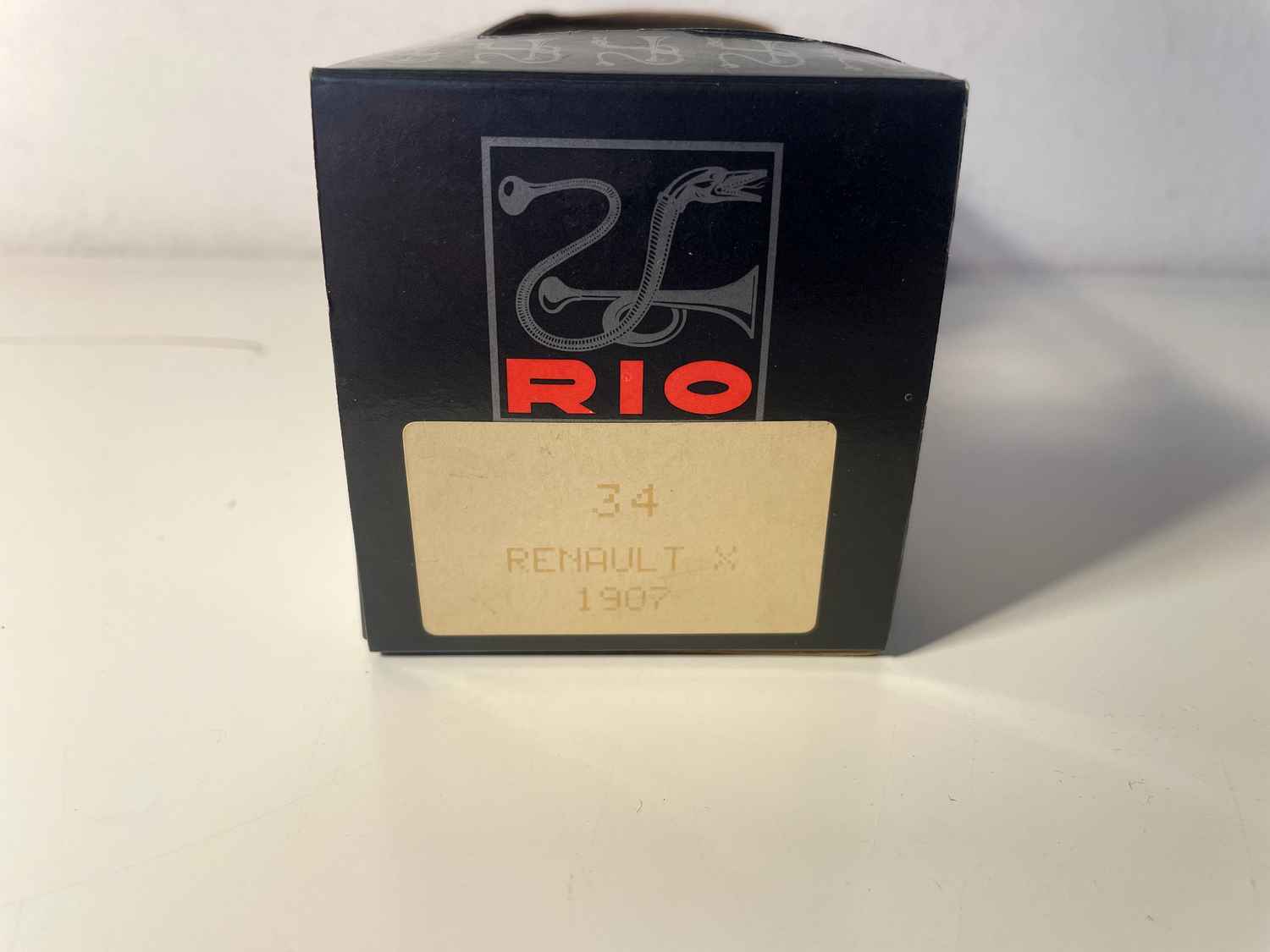 De Renault Type X aus 1907 steet als e besonnesche Zeegner vun den éischten Ufäng vun der franséischer Autoindustrie. Dëse Miniatur huet RIO Nummer 34 finesséiert d'ruestesch Eleganz vun enger Zäit festgehalen, wou d'Automobil nach ëmmer nëmmen e Luxus war, deen e räiche Elit virbehal war.