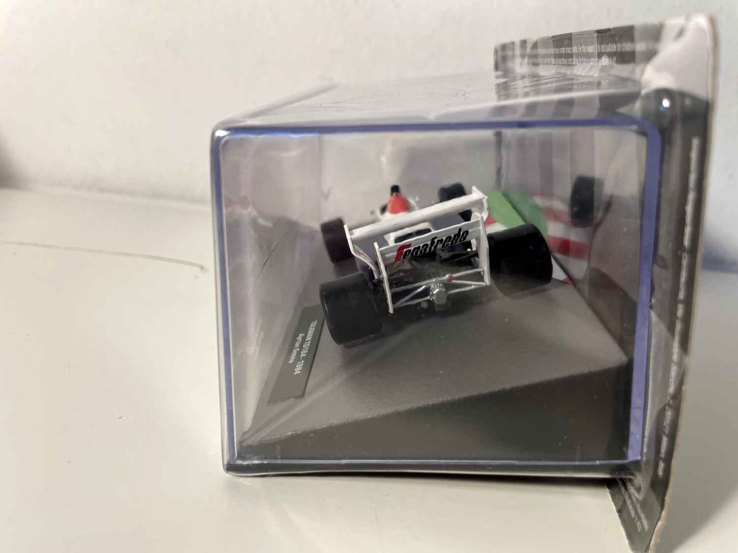 Wéi dir eng unerkannten Mënsch ass, oder eng begeeschterte mam Universum vum Miniaturen am 1/43, dëse Toleman TG184 ass en authentesch Beweis vun enger Zäit, wou de perséinlechen Talent nach ëmmer d'Scheed vum Groussbudget vun den groussen Teams geschitt huet.