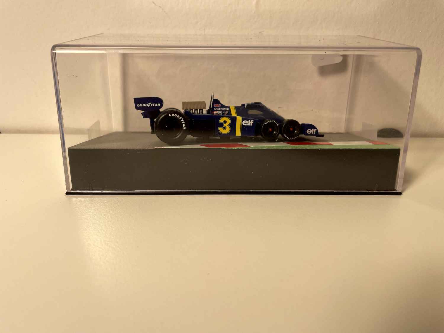 Entdeckt dës Tyrrell P34 blo Nummer 3 vum 1976, eng aussergewéinlech Reproduktioun vun engem vun den revolutionärsten Formule 1 Autoen an der Geschicht. Dës Miniatur gefaasse perfekt d'Wäertschätzung technescher Dreif- a Grëffskonn ze Justifier, d’Auto gouf vum Jody Scheckter an der Saison 1976 gefuer.
