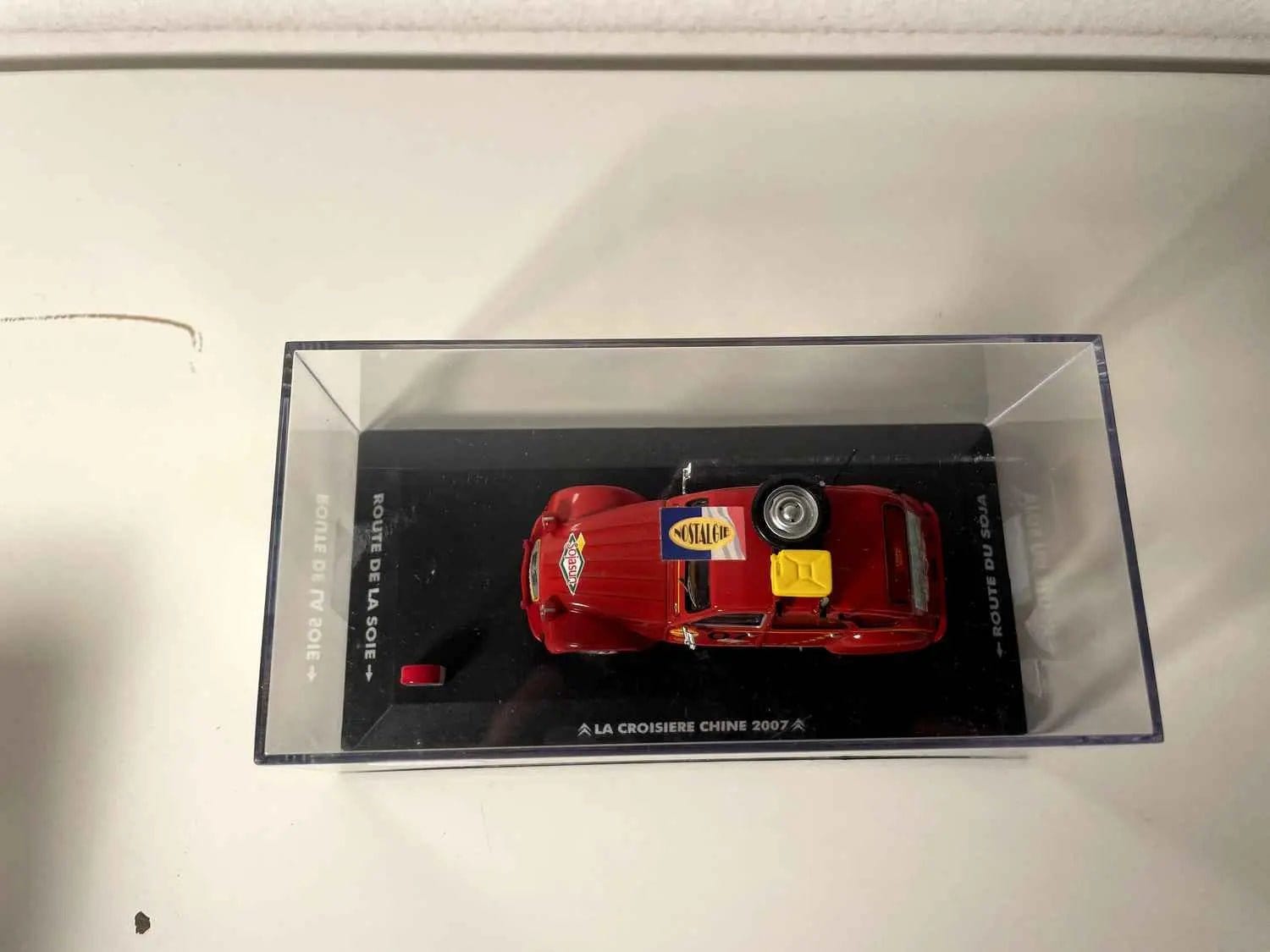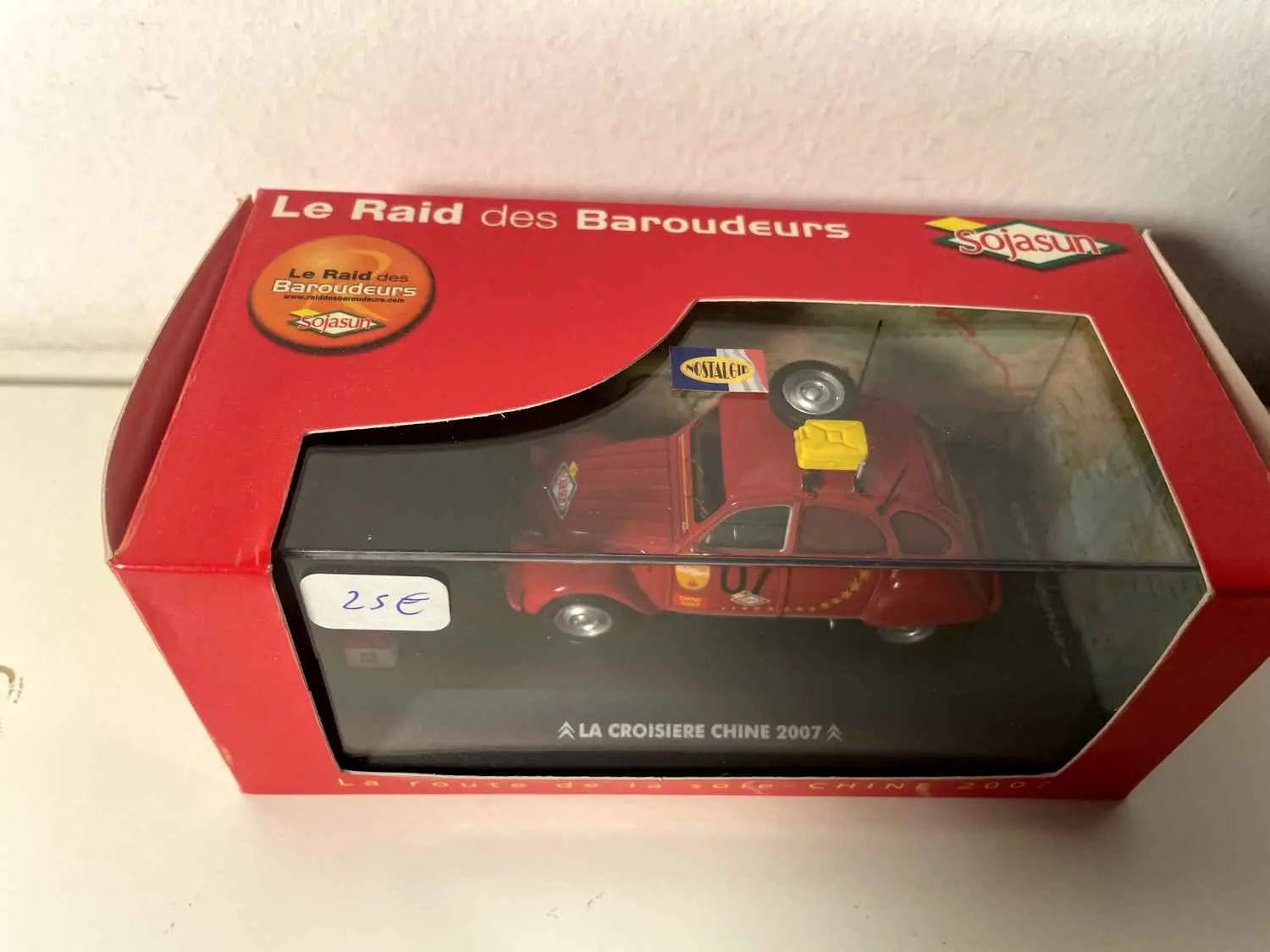 Deze donkerrode Citroën 2CV uit 2007 vereeuwigt een van de meest iconische auto-overvallen van begin 21e eeuw. Deze getrouwe miniatuur legt de avontuurlijke geest van de beroemde China Cruise vast, de buitengewone reis die honderden liefhebbers door Azië zagen reizen achter het stuur van de legendarische "Deuche". Deze reproductie is meer dan alleen een decoratief object; het is een waar testament van de hedendaagse autogeschiedenis.