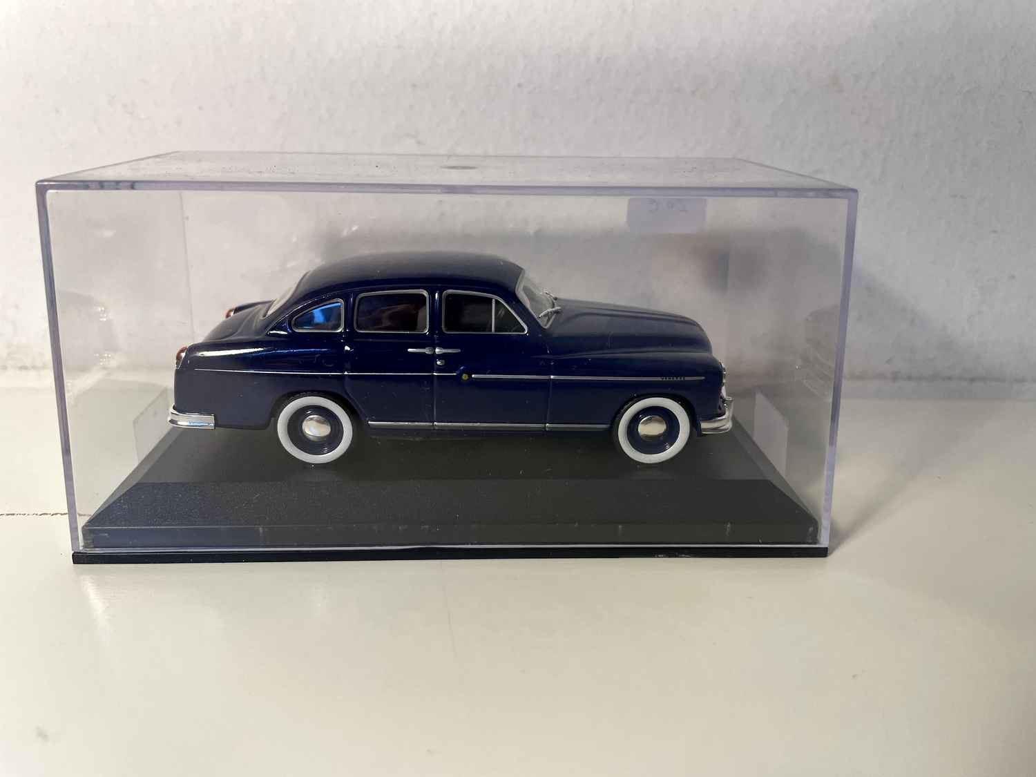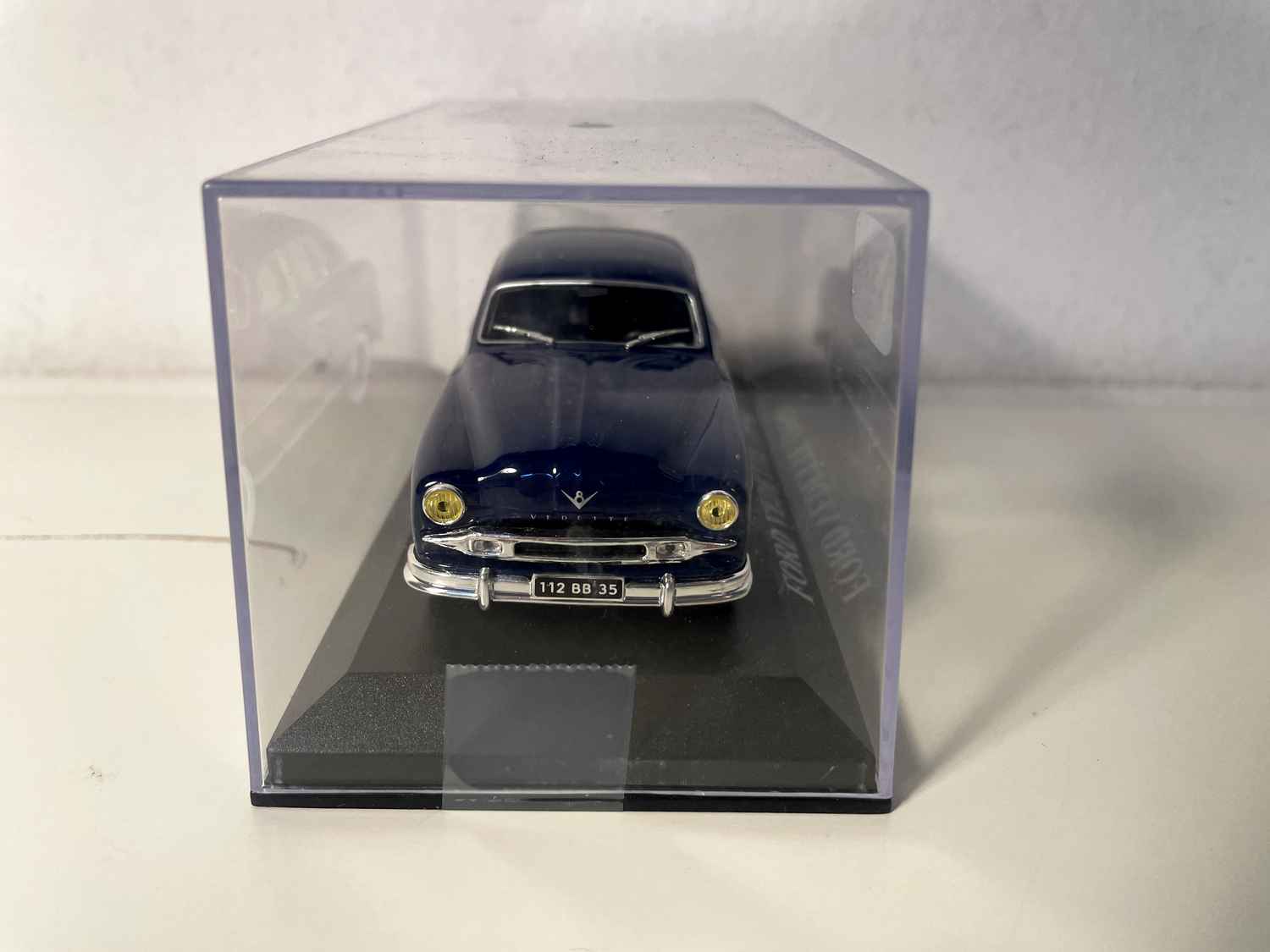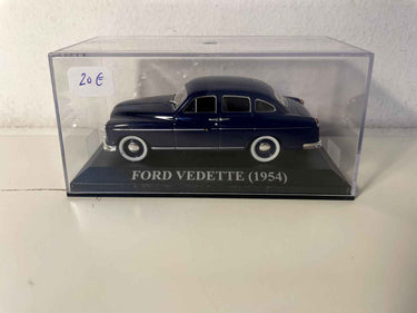 Deze blauwe Ford Vedette uit 1954 op schaal 1/43 is een van de belangrijkste modellen in de Franse autogeschiedenis van de jaren 50. Deze verzamelminiatuur legt perfect de elegantie en verfijning vast van deze sedan, die de Franse bourgeoisie destijds verleidde.