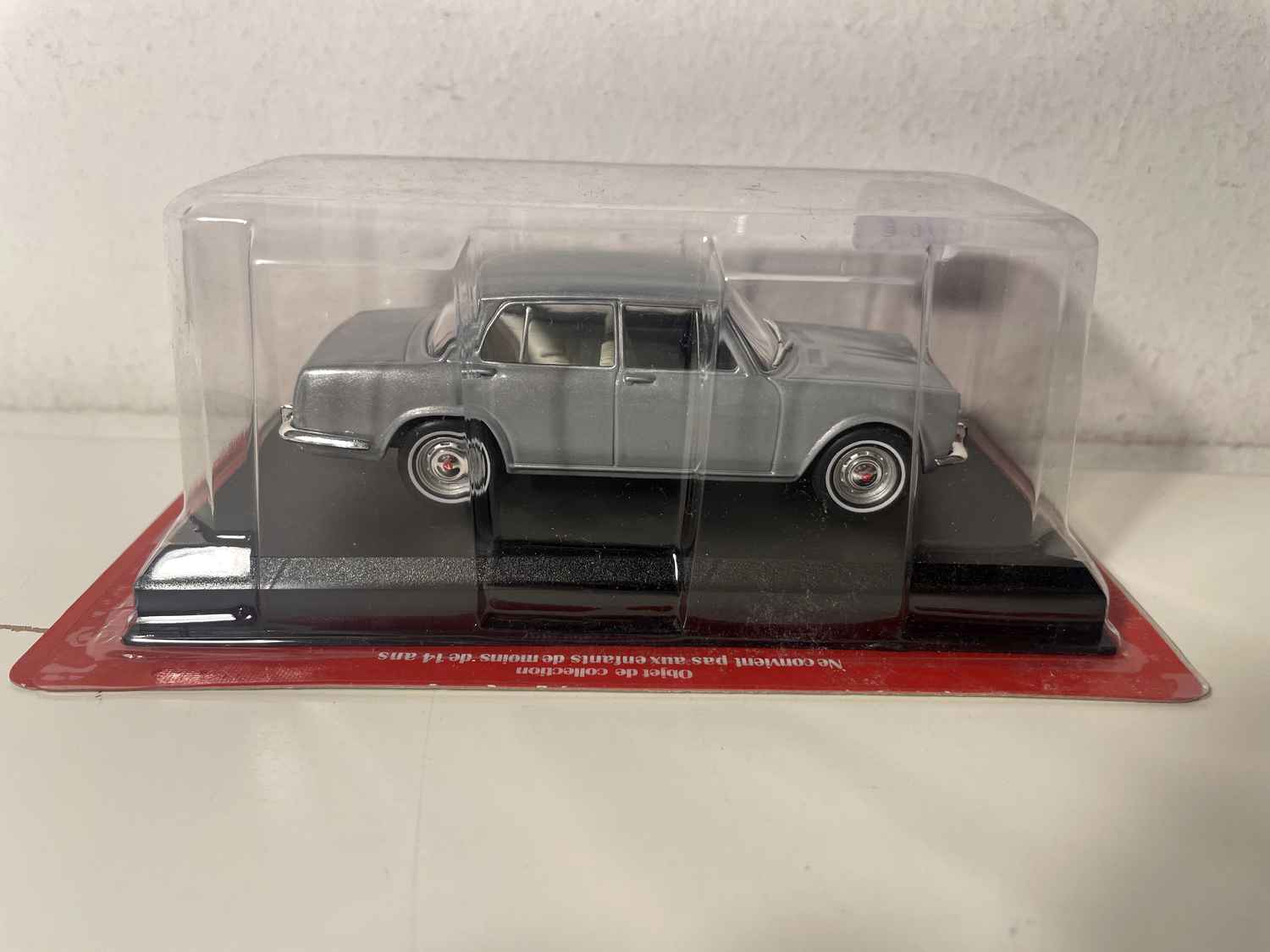 De grijze Simca 1500 uit 1964 vertegenwoordigt een beslissend keerpunt in de geschiedenis van de Franse auto-industrie in de jaren 60. Deze miniatuur op schaal 1/43 legt perfect de ingetogen elegantie en revolutionaire moderniteit vast van dit model, dat een hele generatie automobilisten heeft beïnvloed.