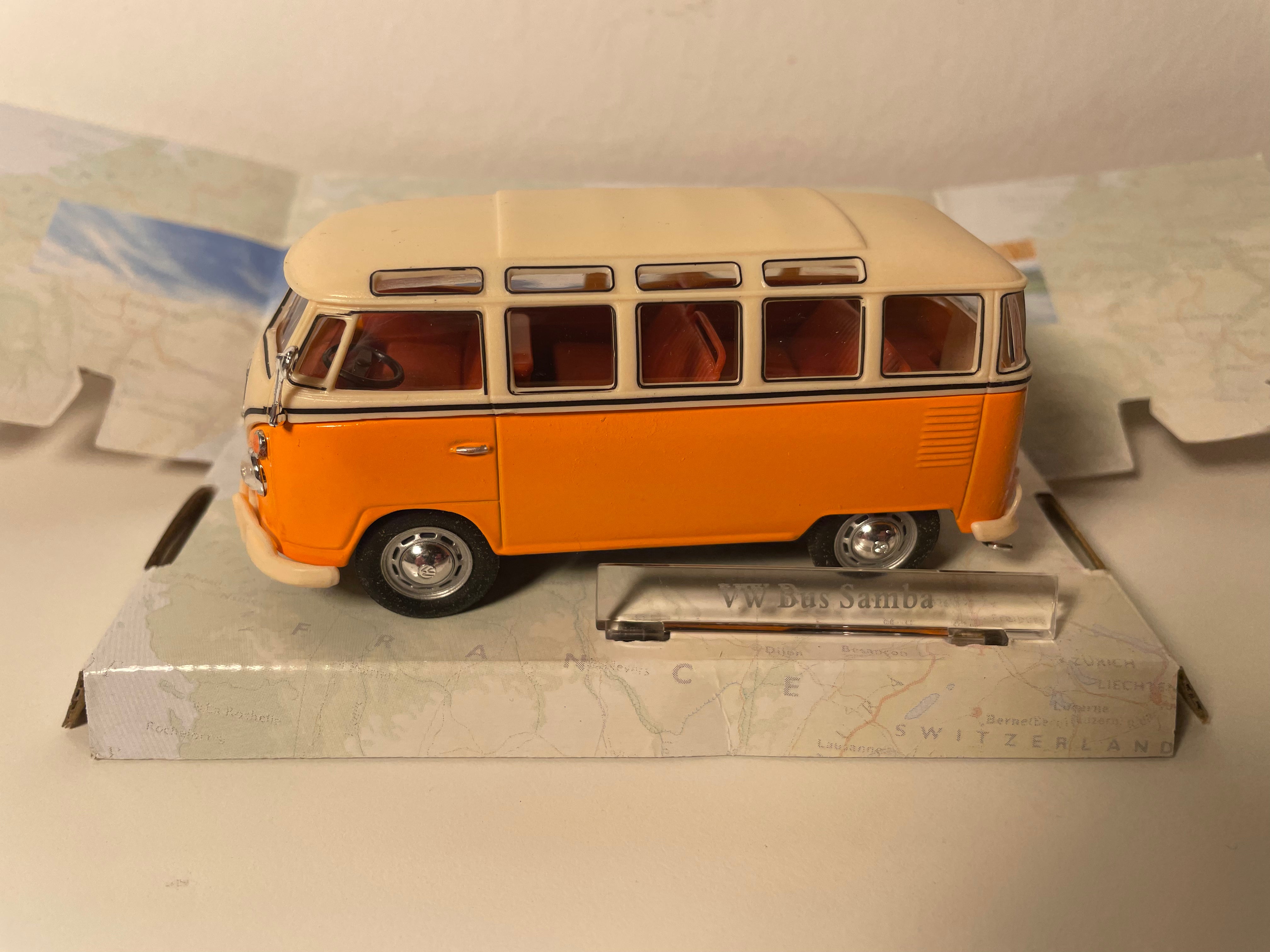 Zelfs vandaag de dag blijft deze mythologische dimensie van de Samba Bus voortleven in de collectieve verbeelding, waardoor elke miniatuur die deze levendige kleuren reproduceert, een fragment is van zowel sociale als automobilistische geschiedenis. De combinatie van oranje en beige van ons model roept direct die gezegende tijd op waarin het auto rijden samenging met ontsnapping en idealisme.