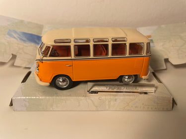 Modelauto's Volkswagen Samba Bus Oranje met Beige Dak (Cararama)