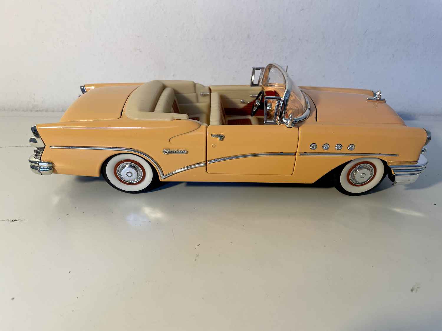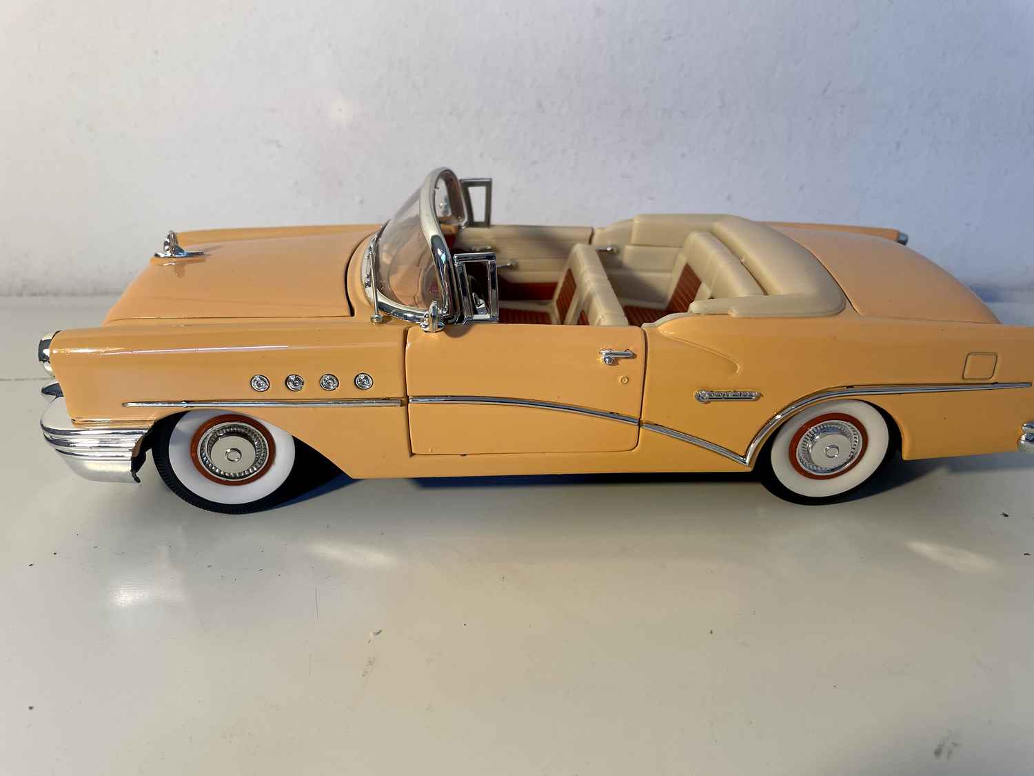 Cette magnifique réplique de la Buick Century 1955 en version orange pâle représente l'un des symboles les plus emblématiques de l'automobile américaine des années 50. Produite par Solido à l'échelle 1/18ème, cette miniature Buick capture parfaitement l'essence du design automobile de cette époque dorée.