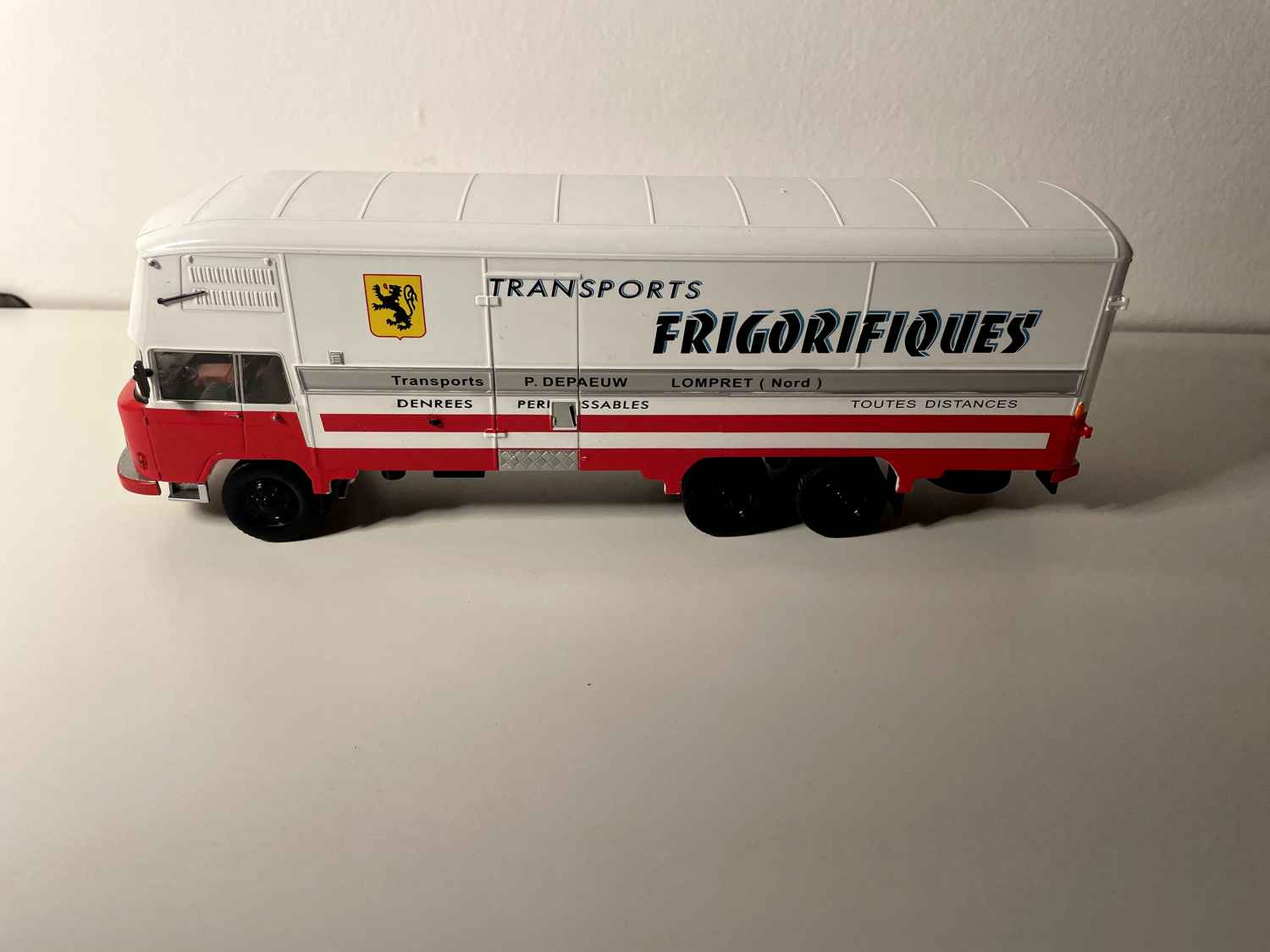Modeliki Samochodów Chłodnia Berliet GPRK 10 w białym i czerwonym - Transporty P. Depaeuw - Lompret (Nord)