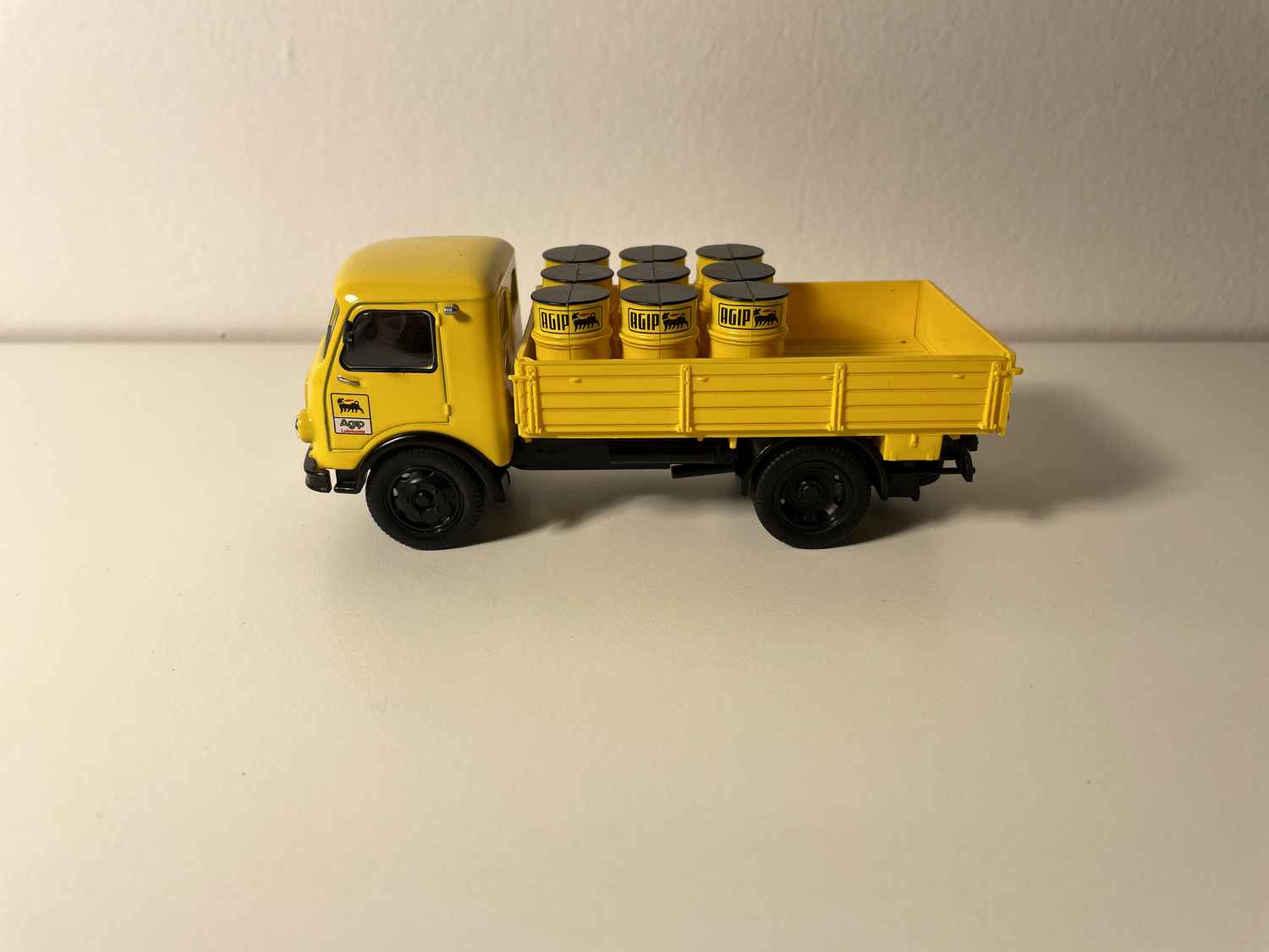 - Modèle : OM LEONCINO plateau ridelles avec bidons AGIP