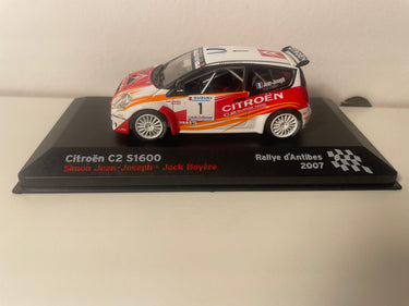 Ten Citroën C2 S1600 w białym, czerwonym i pomarańczowym malowaniu wiernie odwzorowuje egzemplarz zaangażowany przez załogę Simon Jean-Joseph / Jack Boyère podczas rajdu w Antibes w 2007 roku. Dumnie noszący numer 1, ten model oddaje ducha rywalizacji w jednej z najbardziej spektakularnych kategorii rajdów we Francji.