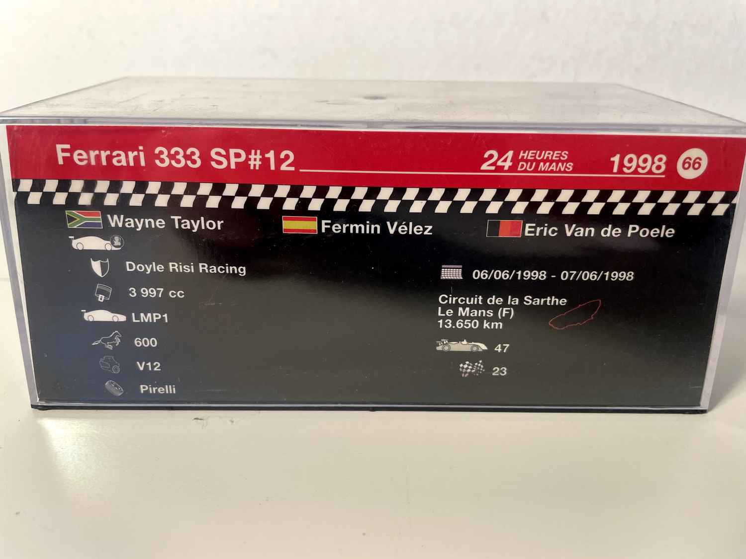 L'édition 1998 des 24 Heures du Mans fut particulièrement mémorable pour Ferrari. La 333 SP numéro 12, pilotée par Wayne Taylor, Fermín Vélez et Eric van de Poele, incarnait l'ambition italienne face aux redoutables concurrents que représentaient les Porsche et les Mercedes de l'époque.