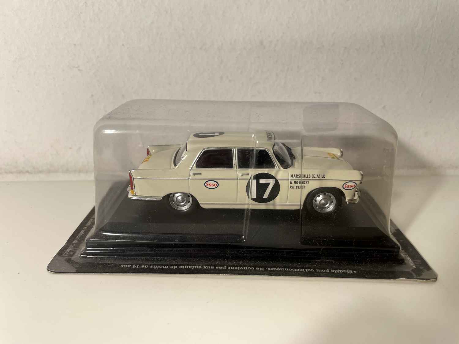 Odkryj tę wspaniałą reprodukcję Peugeot 404 kremowy numer 17, która brała udział w legendarnym Rajdzie Safari w 1968 roku. Ten model w skali 1/43 doskonale uchwyca esencję tej francuskiej limuzyny w jej rajdowej konfiguracji, prowadzonej przez załogę N. Nowicki / P. Cliff.