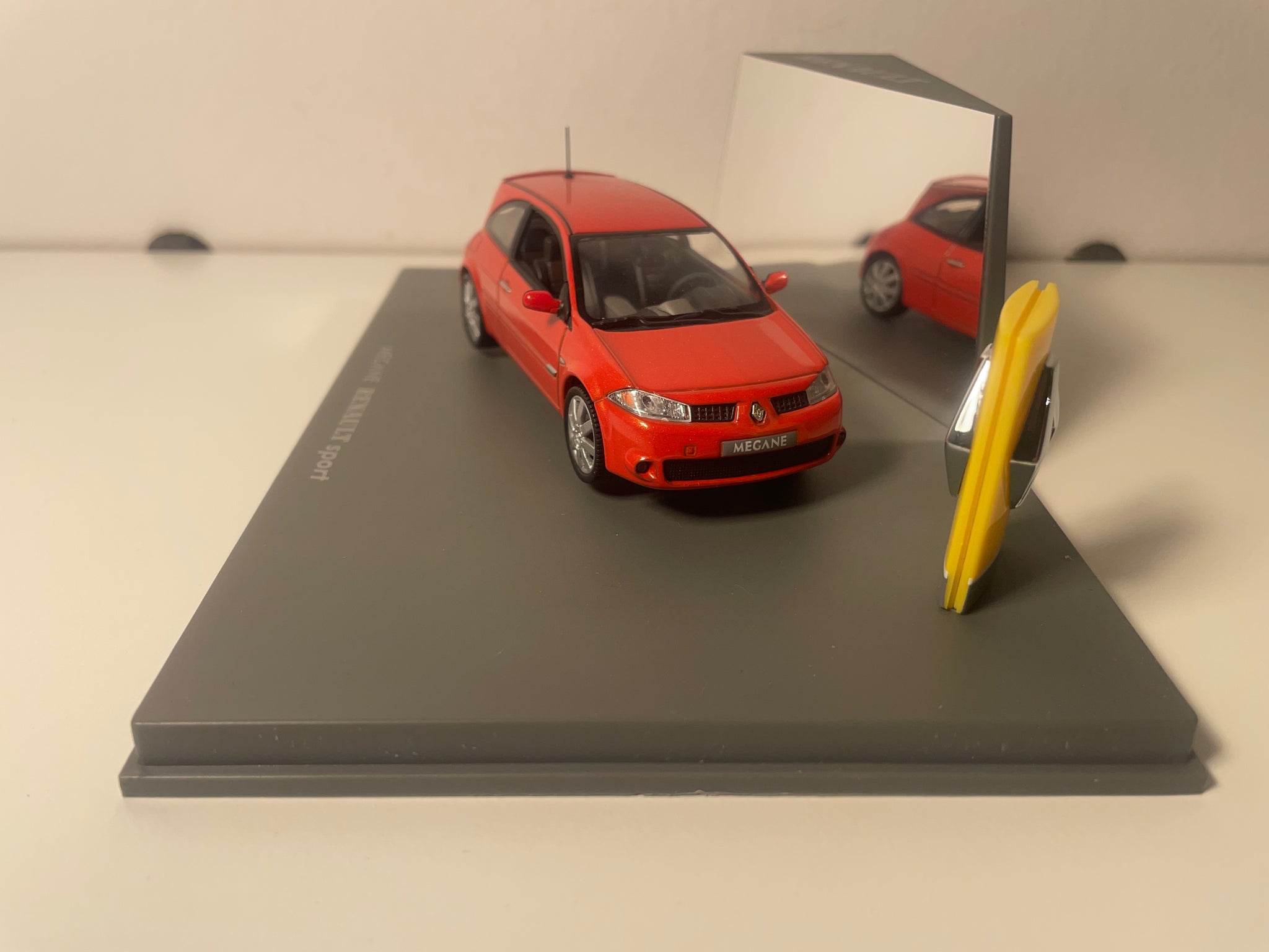 Prezentowany w pudełku prostokątnym, ten egzemplarz kolekcjonerski jest przeznaczony dla pasjonatów francuskich samochodów oraz kolekcjonerów poszukujących autentyczności. Ciemnoczerwona kolorystyka szczególnie podkreśla napięte i sportowe linie tej wyjątkowej Mégane.