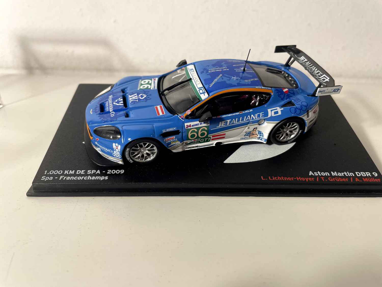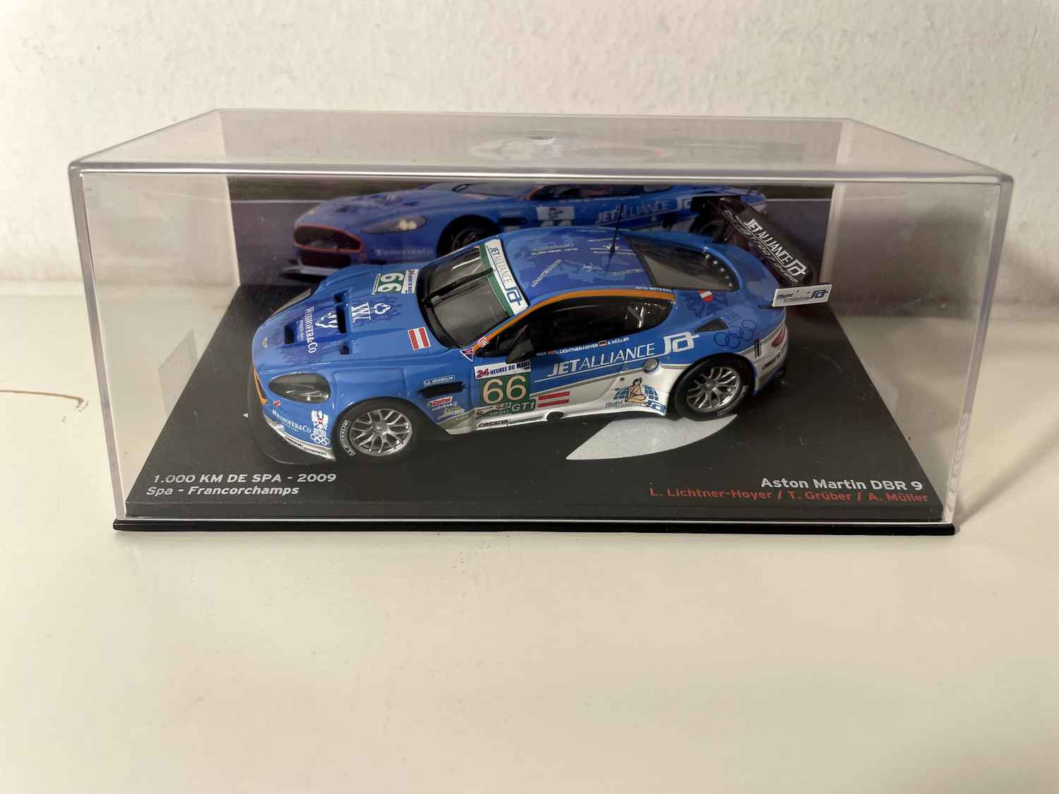Voiture Miniature Aston Martin DBR9 bleue numéro 66 - 1000 kms de Spa de 2009 (Spa-Francorchamps)