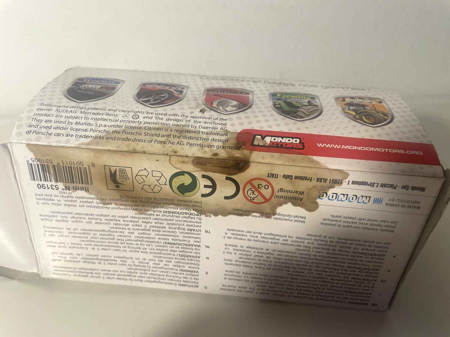 Boite en carton abimée et tâchée (voir photo)