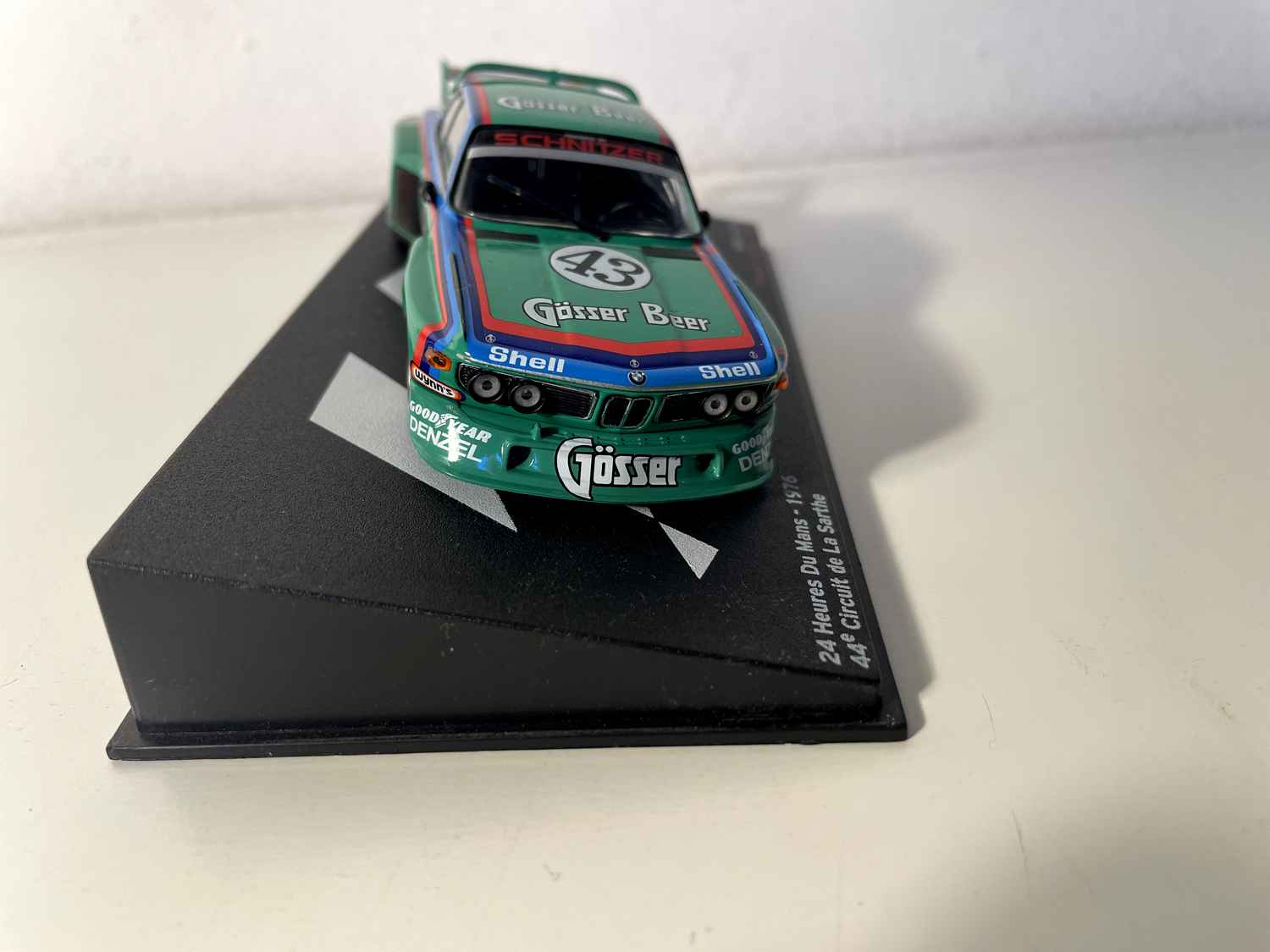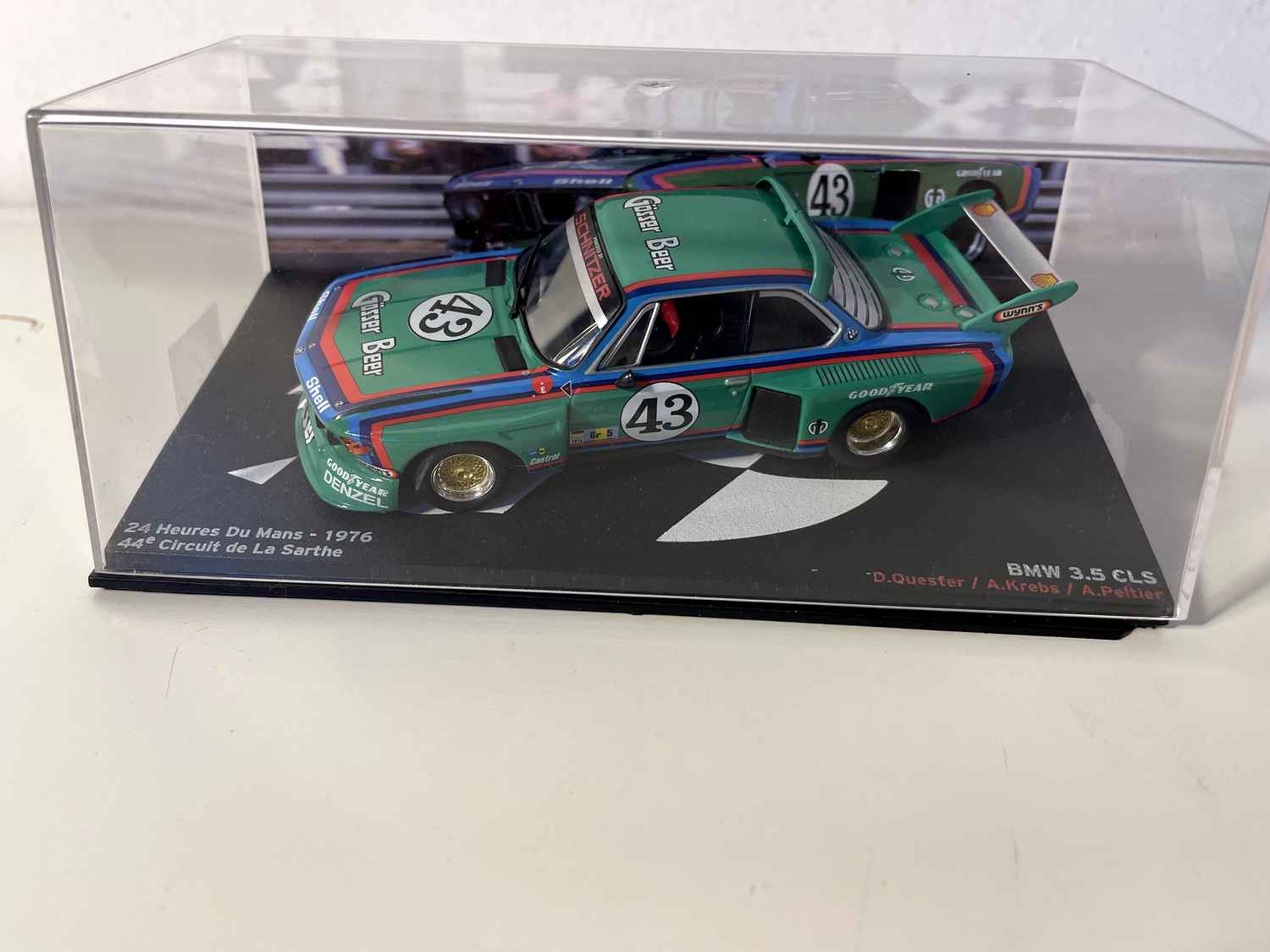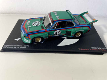 Voiture Miniature BMW 3.5 CLS verte, rouge et bleue numéro 43 - 24 heures du Mans de 1976