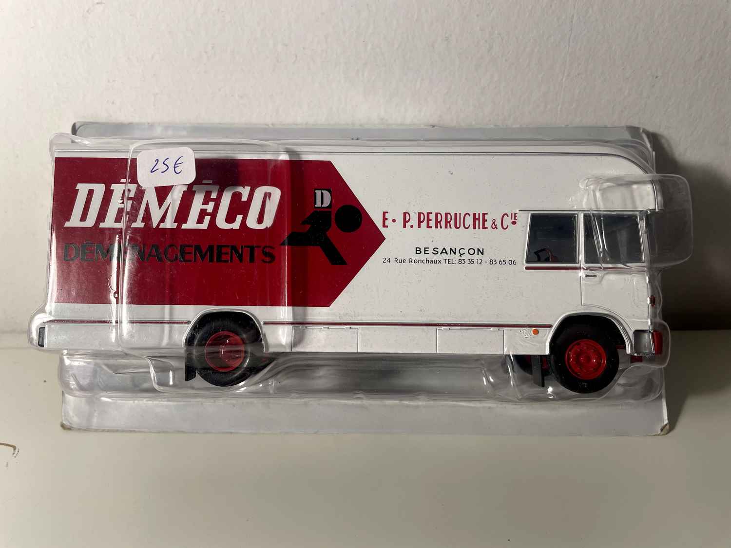 Voiture Miniature Camion Berliet GBK 75 blanc et rouge Déménagements DEMECO - collection Hachette