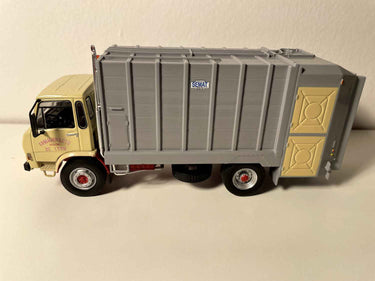 Cette miniature du Berliet GC 100 dans sa livrée jaune et grise nous replonge dans l'histoire de la propreté urbaine française des années 1960-1970. Ce camion benne dédié au ramassage des ordures ménagères représente un pan méconnu mais essentiel de notre patrimoine automobile industriel.