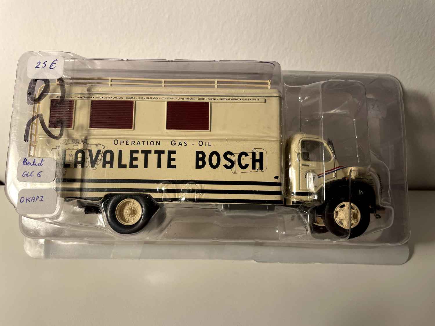 Voiture Miniature Camion Berliet GLC 6 OKAPI beige LAVALETTE BOSCH avec 6 fenêtres (avec blister mais sans le carton)