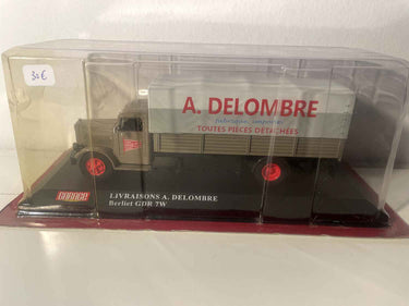 Voiture Miniature Camion de livraisons Berliet GDR 7W marron et bâche grise - Livraisons A. Delombre - Collection Garage Moderne