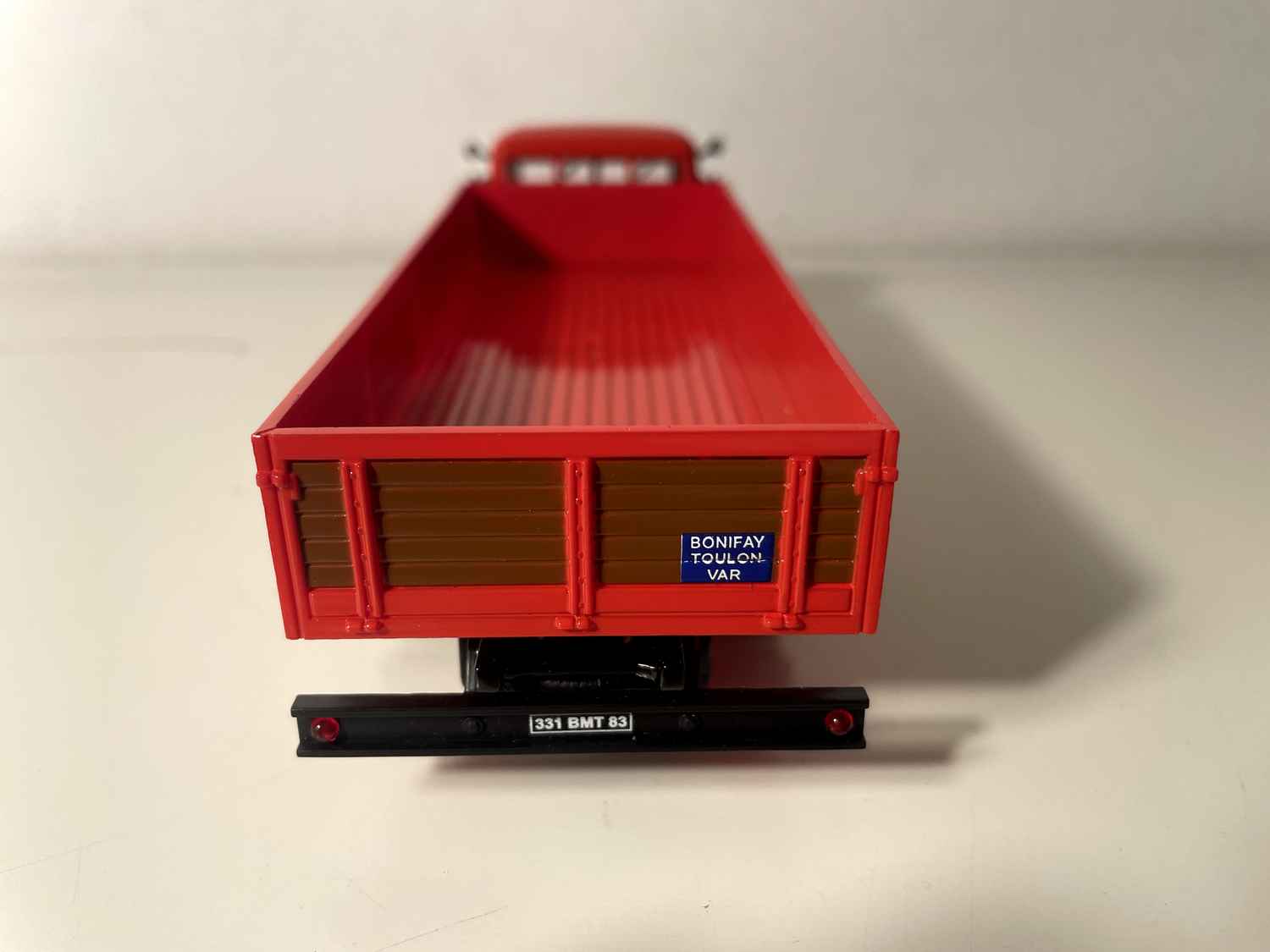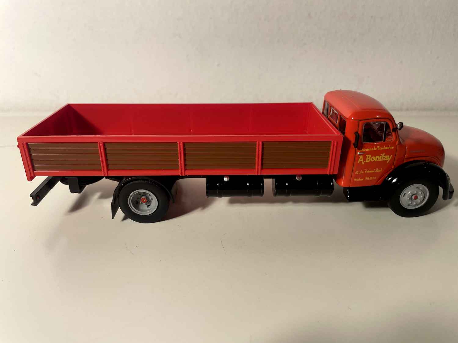 Voiture Miniature Camion rouge MAGIRUS DEUTZ MERKUR plateau de 1955 (A. Bonifay sur la porte)