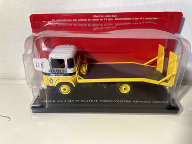 Voiture Miniature Camion Saviem SG 4 MB 59 plateau porte-voiture RENAULT service (camion jaune et blanc)