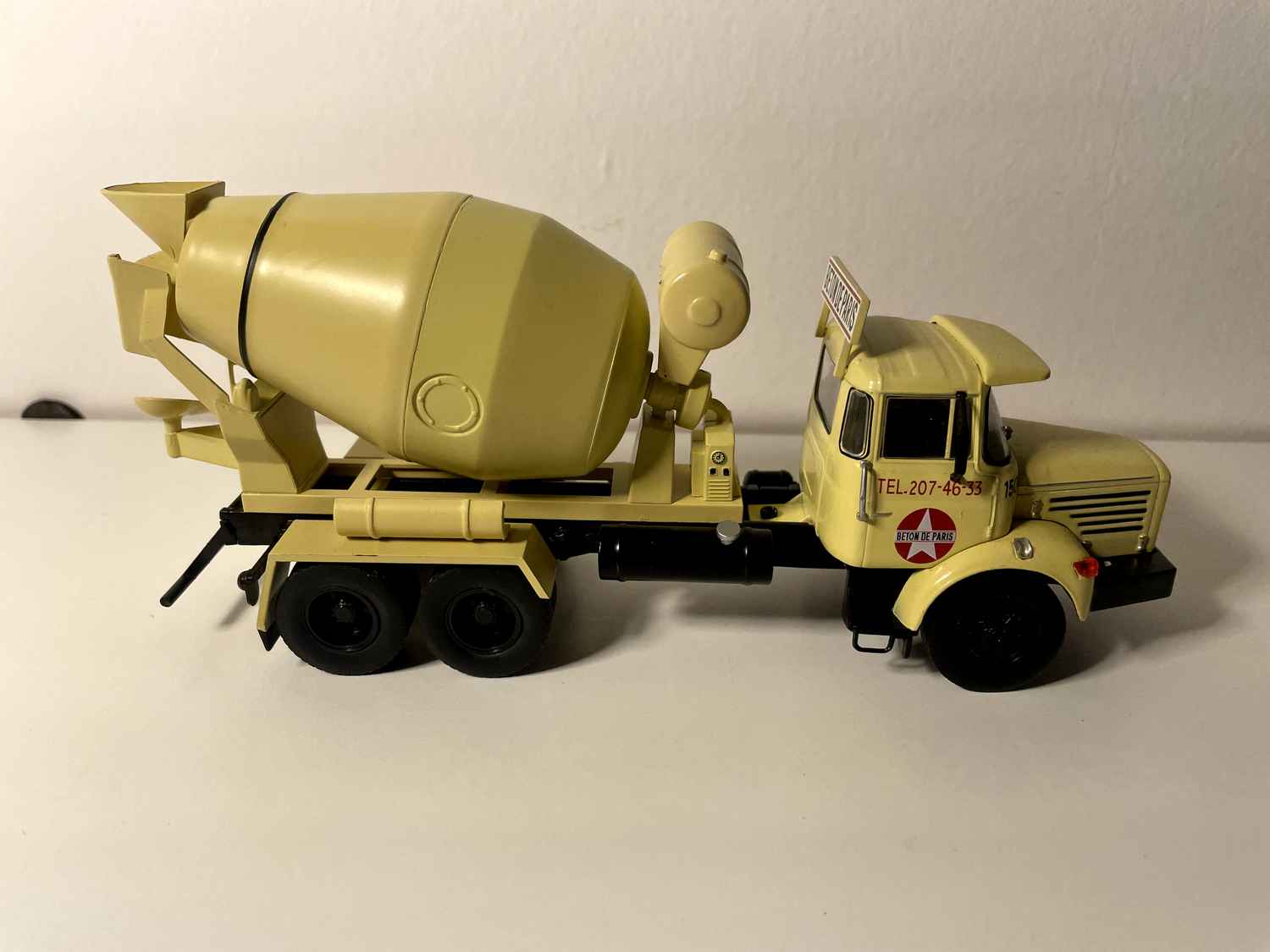 Reproduite avec un souci du détail remarquable, cette miniature capture l'essence d'une époque où Paris se transformait grâce aux grands chantiers urbains et où les camions toupies devenaient indispensables à la construction moderne.