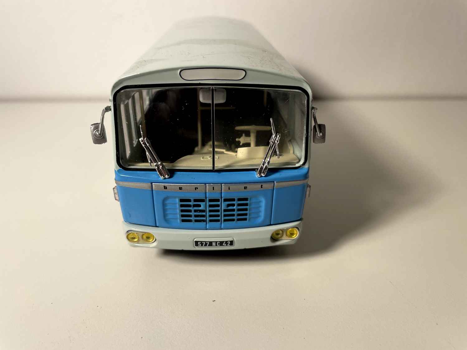 Cette miniature représente un Car Berliet PAK 50 dans sa livrée bleue caractéristique, un véhicule emblématique du transport français d'après-guerre. Ce modèle réduit capture parfaitement l'essence de cet autocar qui a marqué les routes de France pendant plusieurs décennies.