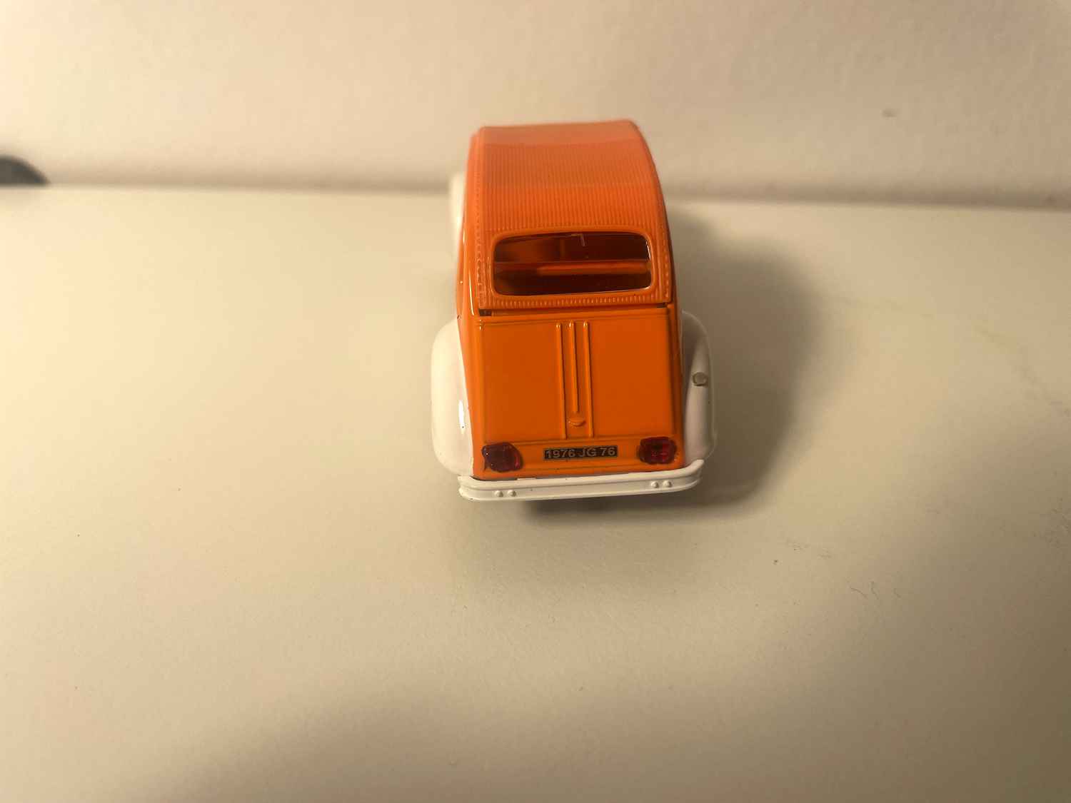 Voiture Miniature Citroën 2 CV 4 SPOT blanche et orange et toit orange - Norev
