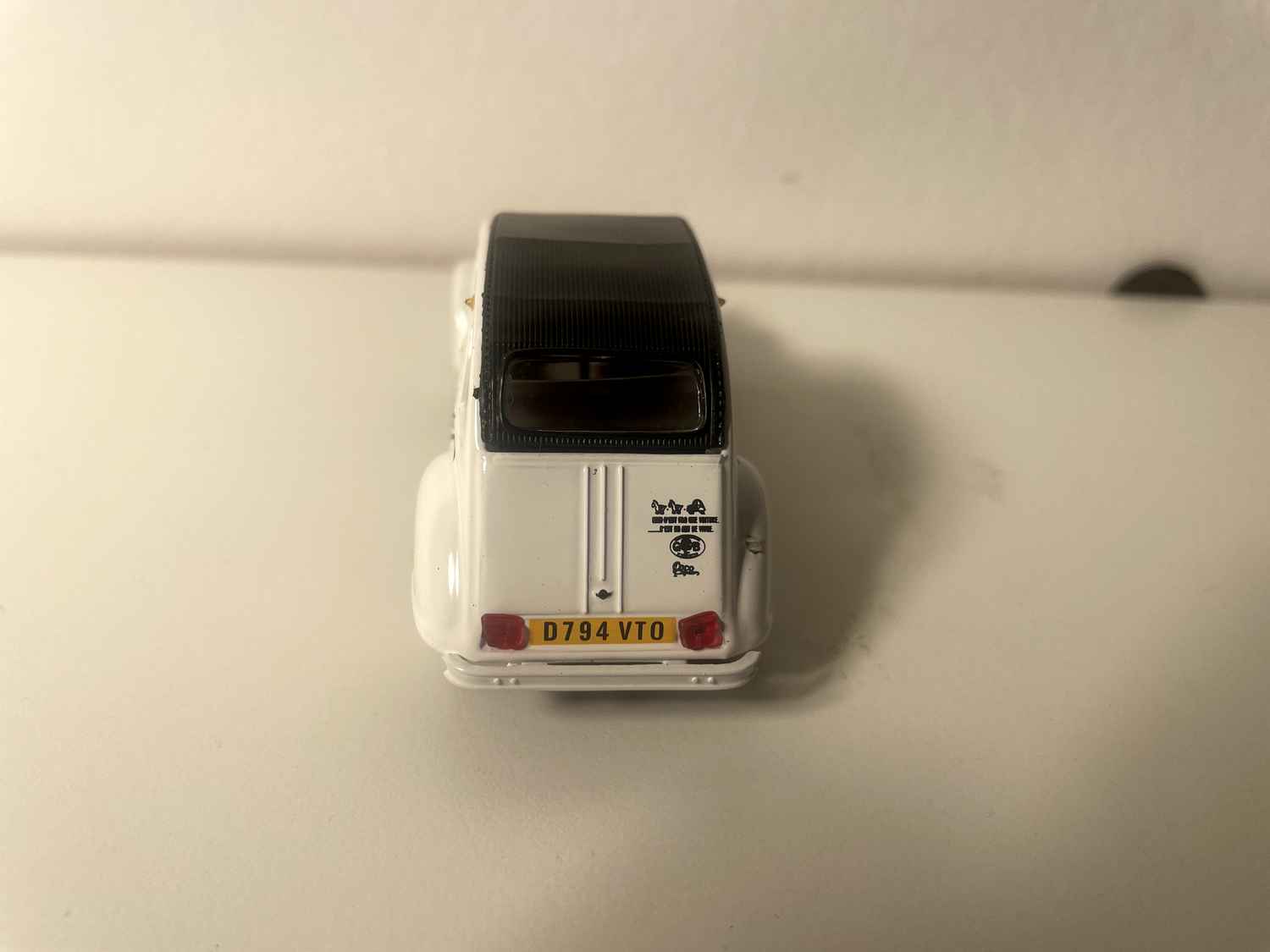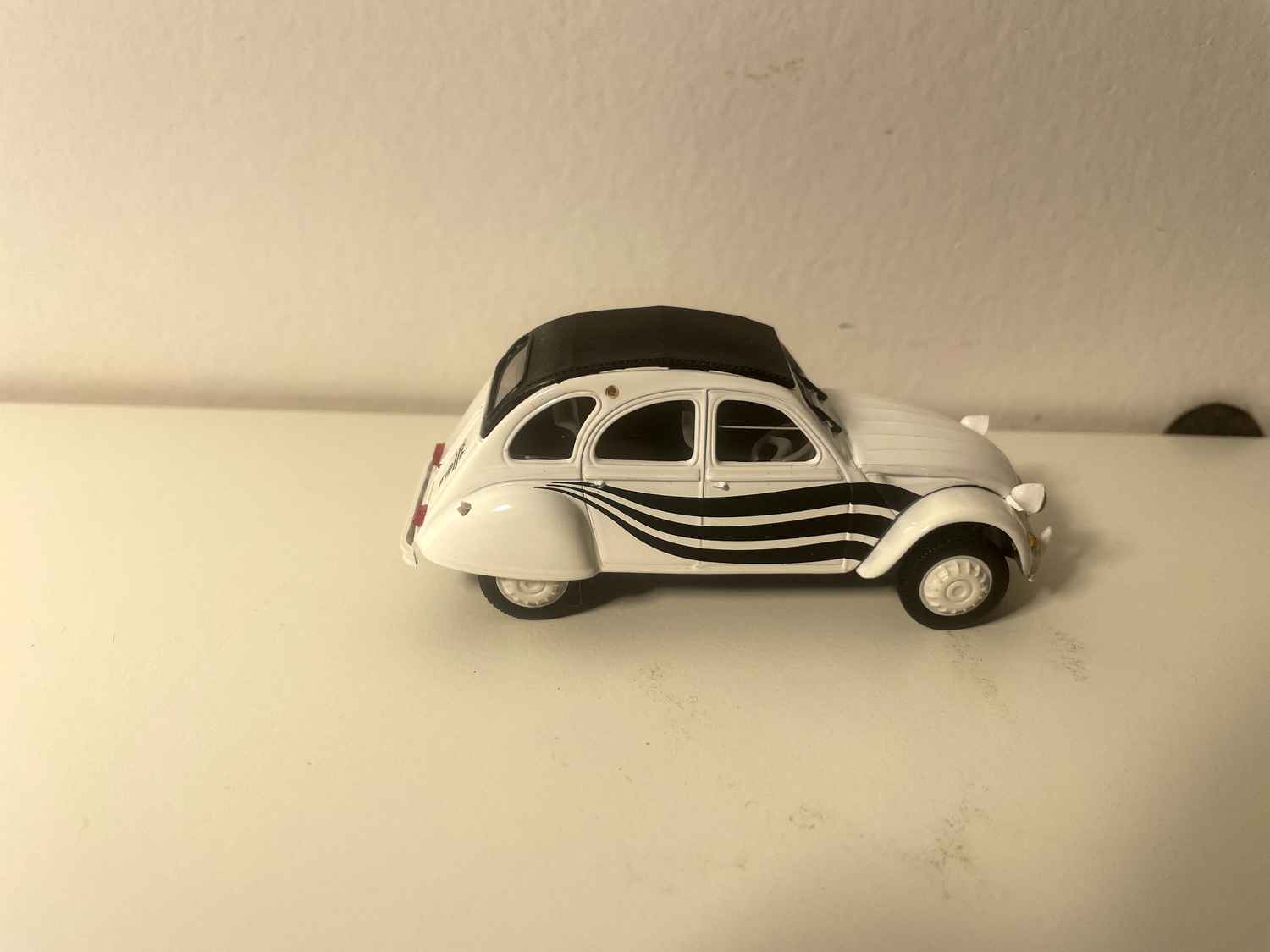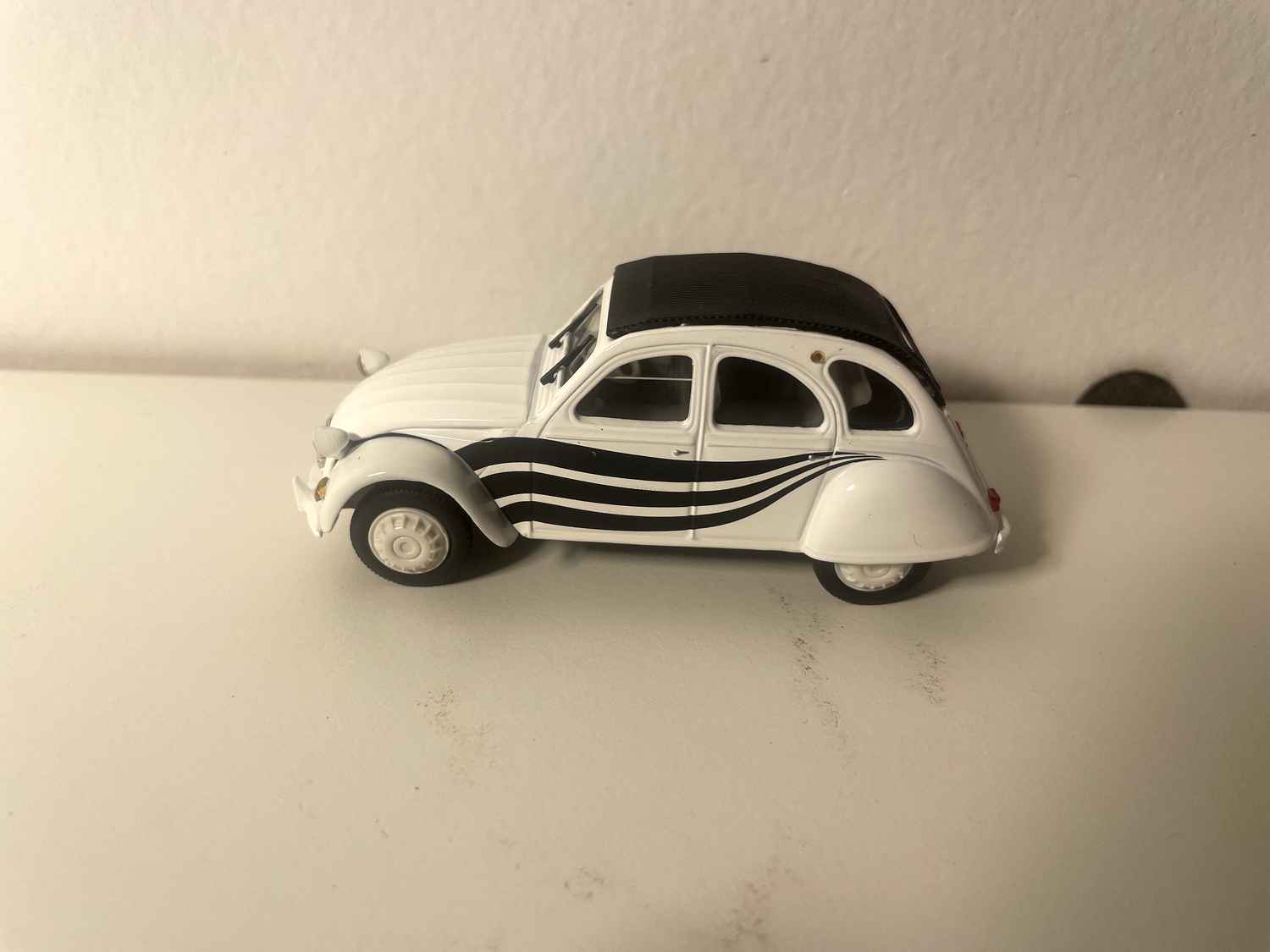 Voiture Miniature Citroën 2 CV 6 blanche avec rayures noires et toit noir - Norev (sous blister)