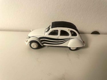 Voiture Miniature Citroën 2 CV 6 blanche avec rayures noires et toit noir - Norev