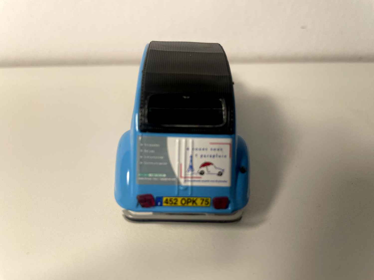 Véritable symbole de l'automobile française, cette 2 CV miniature s'adresse aux collectionneurs passionnés par les véhicules publicitaires et les voitures françaises de l'âge d'or. Elle témoigne de l'utilisation commerciale intensive qu'ont connue ces véhicules tout au long de leur carrière.