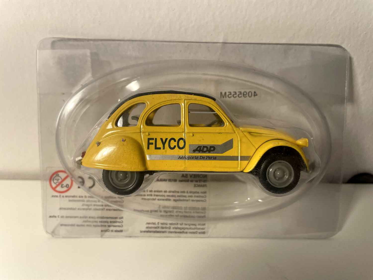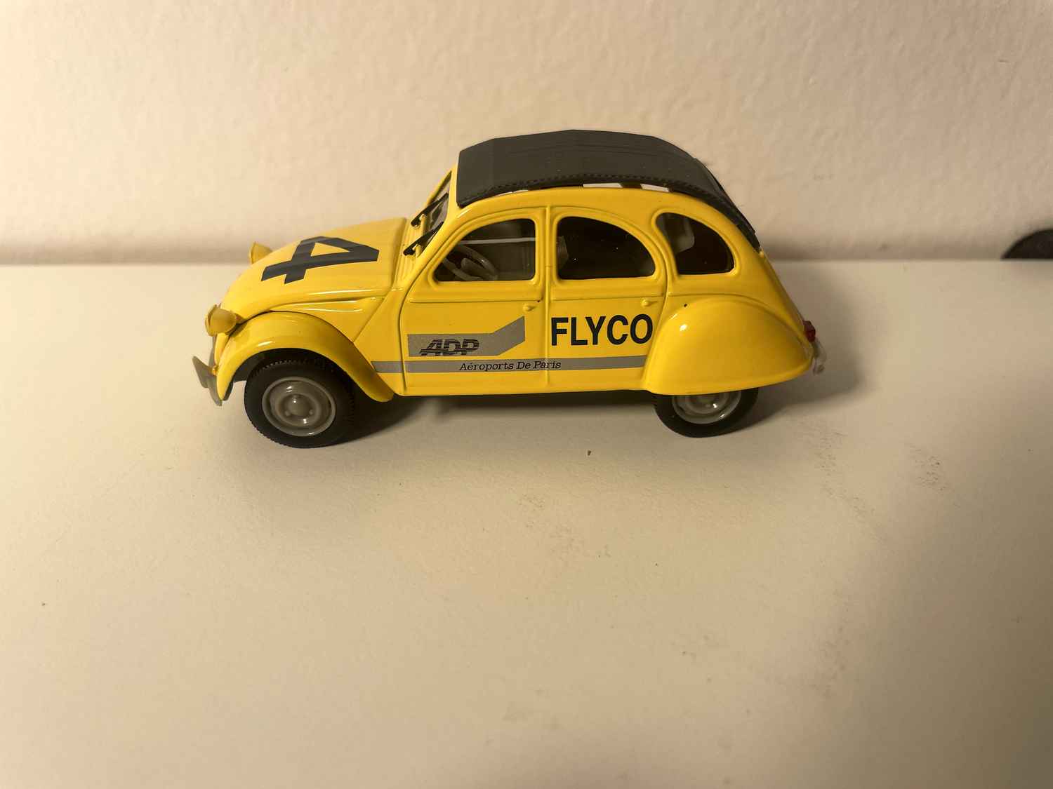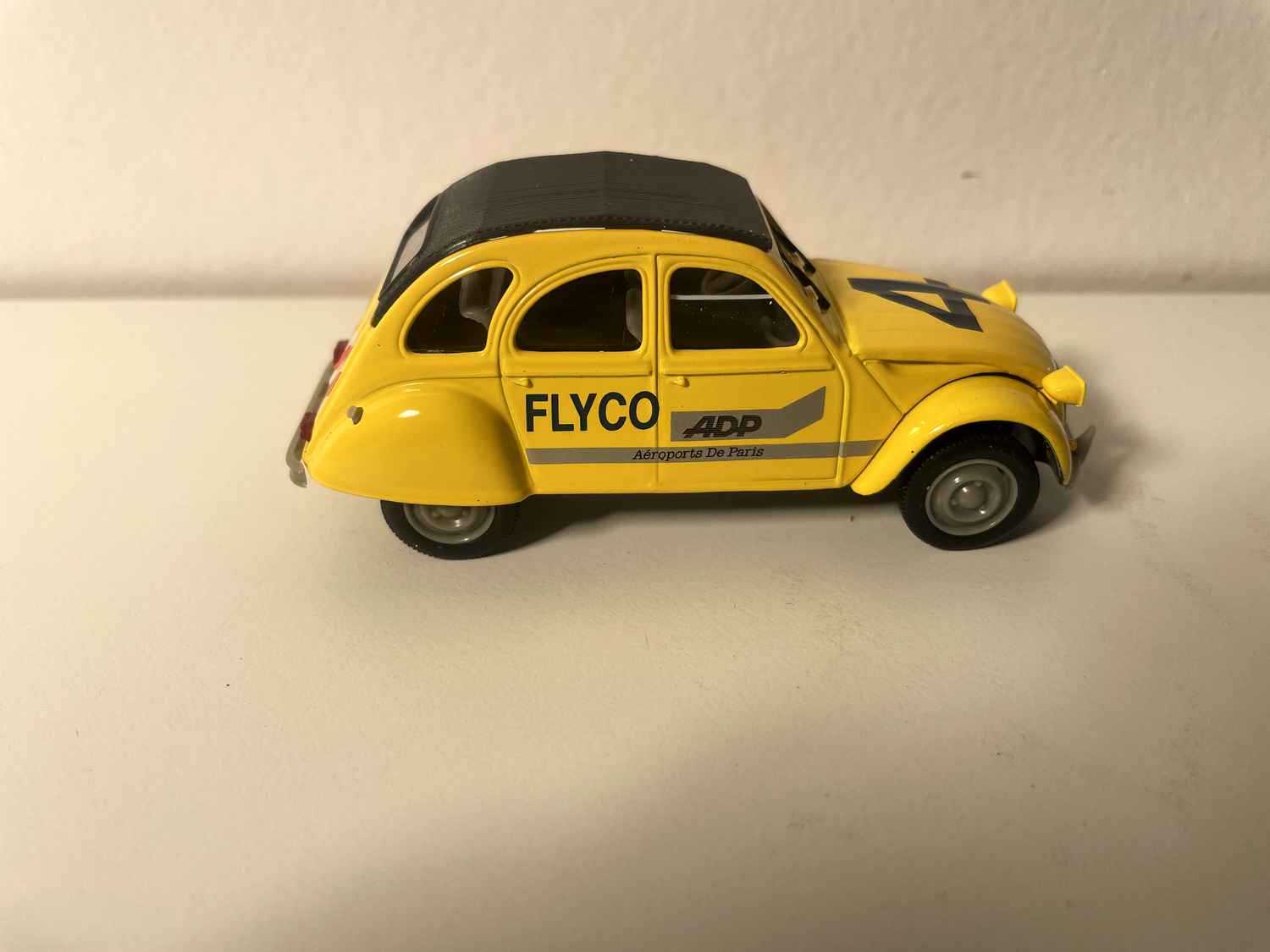 Voiture Miniature Citroën 2 CV 6 jaune et toit noir FLYCO ADP - Aéroports de Paris - Norev (sous blister)