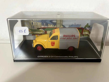 Voiture Miniature Citroën 2 CV camionnette jaune et grise PHILIPS