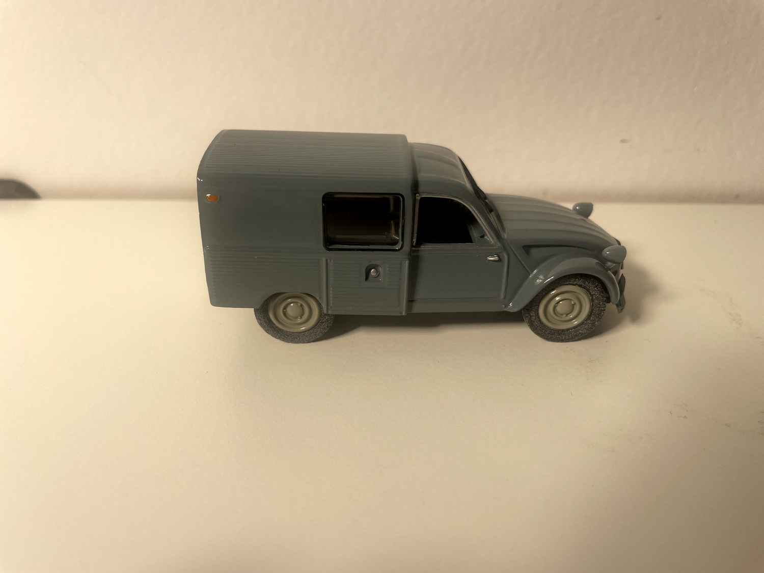 Voiture Miniature Citroën 2 CV fourgonnette grise et jantes grises