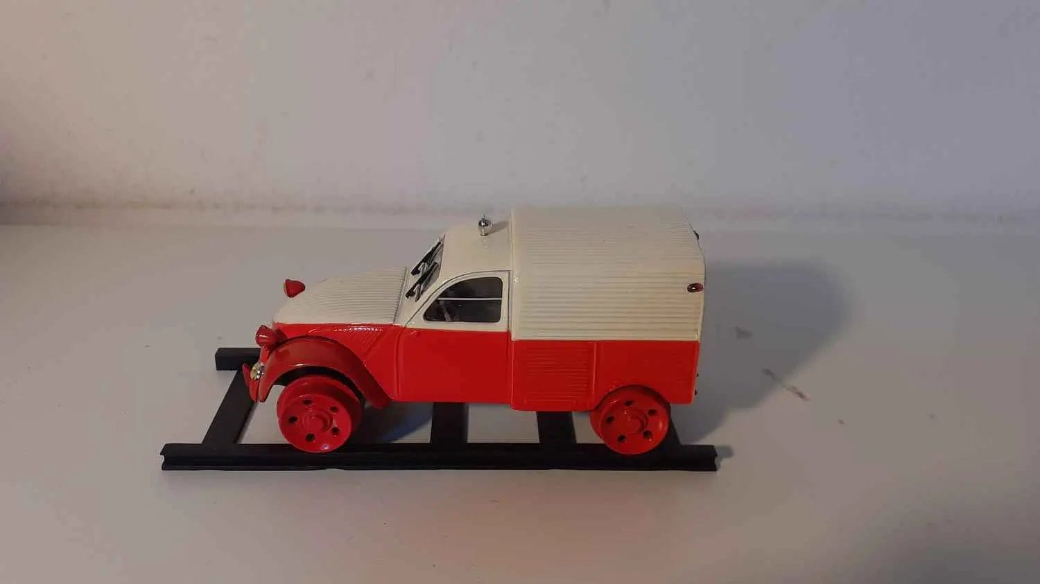 Voici une **miniature extraordinaire** qui sort des sentiers battus : la Citroën 2CV sur rails à l'échelle 1/43ème. Cette pièce unique capture un moment fascinant de l'histoire automobile française, où l'ingéniosité populaire a transformé la mythique **"Deudeuche"** en véhicule ferroviaire de fortune. Un objet de collection qui témoigne de la débrouillardise légendaire des Français et de la polyvalence exceptionnelle de ce modèle iconique.