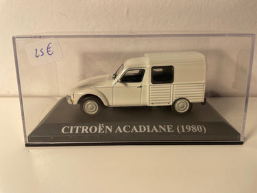 Cette Citroën Acadiane trouve naturellement sa place dans une collection dédiée aux véhicules utilitaires français ou aux modèles Citroën emblématiques. Elle s'harmonise parfaitement avec d'autres références de la gamme, notamment les miniatures Citroën comme la 2CV ou la Dyane, formant un ensemble cohérent représentatif de l'identité populaire de la marque.
