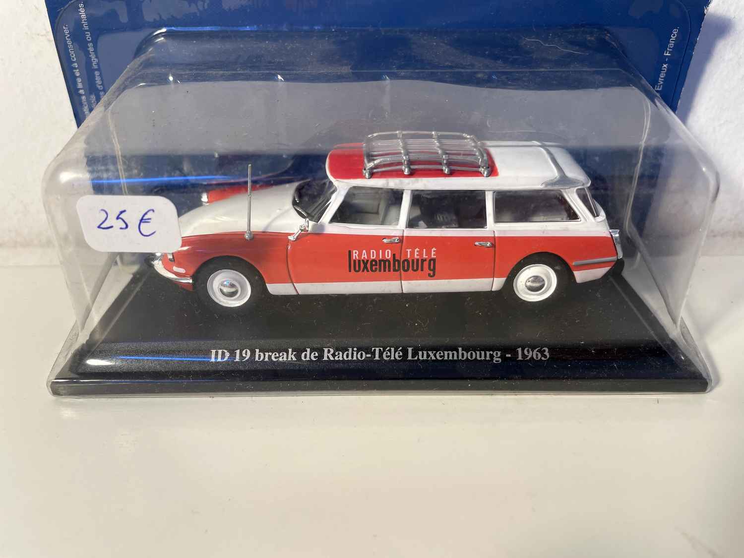 Voiture Miniature Citroën ID 19 Break rouge et blanche RTL (Radio-Télé Luxembourg) de 1963