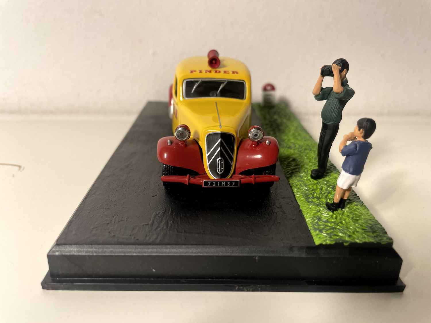 Voiture Miniature Citroën Traction avant jaune et rouge du cirque Pinder - La Nationale 7 - La route bleue
