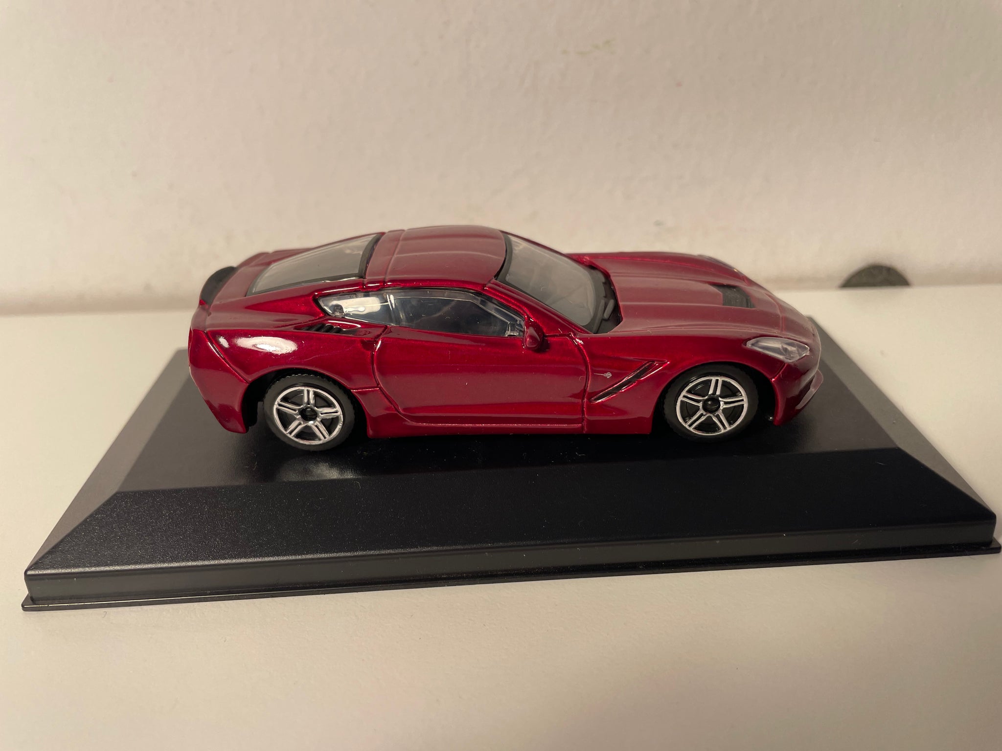 Découvrez cette magnifique Corvette Stingray bordeaux de 2014, une reproduction fidèle de l'une des sportives américaines les plus emblématiques de sa génération. Cette miniature capture parfaitement l'esprit de la C7, septième génération de la légendaire Corvette, dans une superbe teinte bordeaux qui souligne ses lignes racées et sa personnalité affirmée.