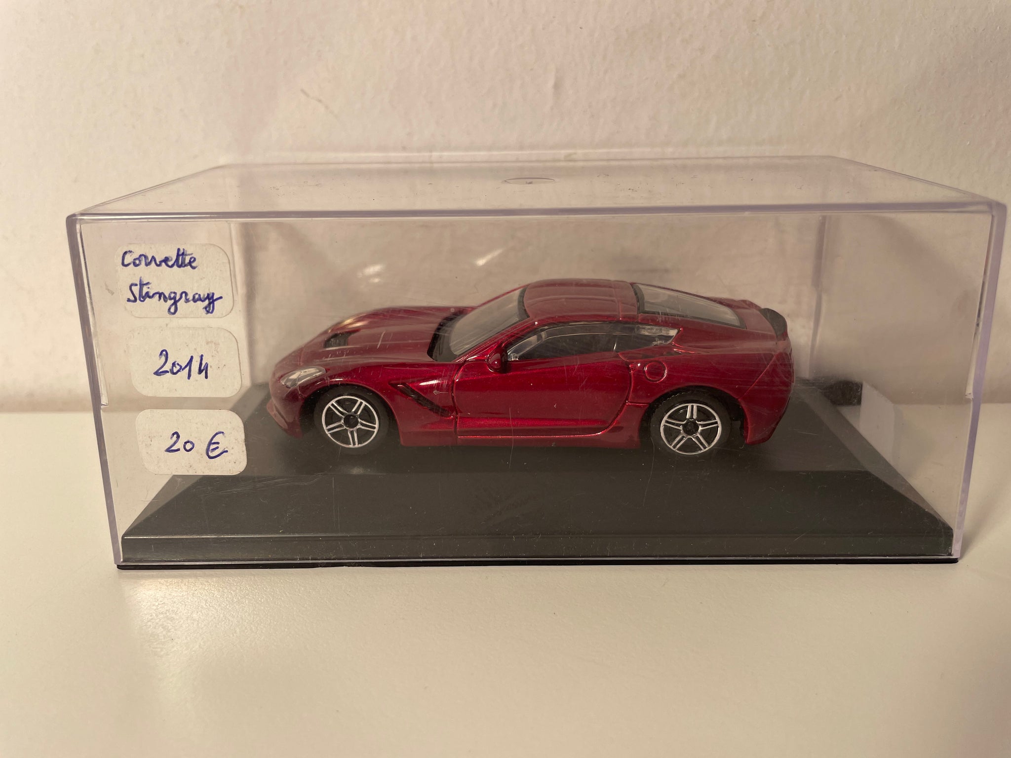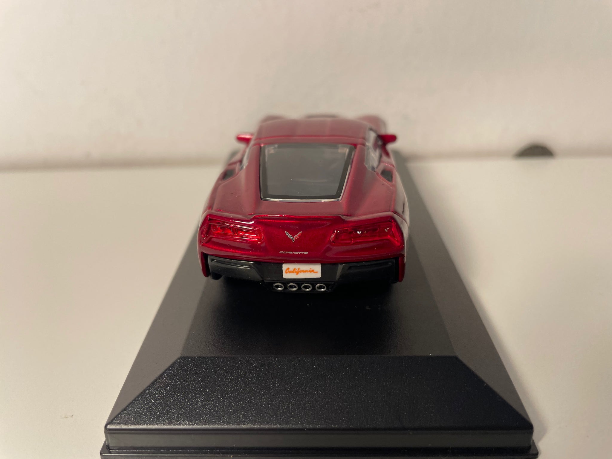 Voiture Miniature Corvette Stingray bordeaux de 2014 (voiture américaine) - boite plexi