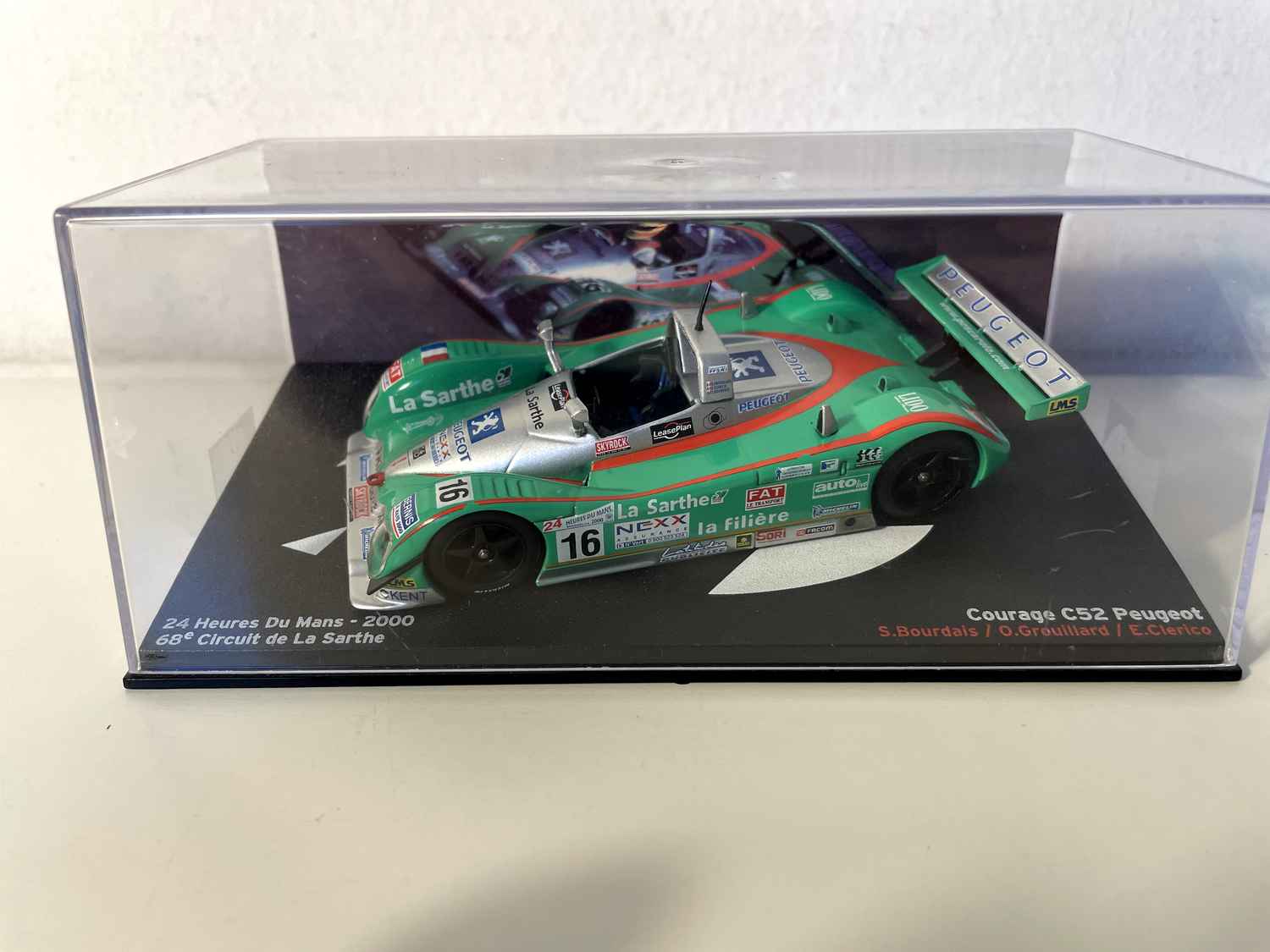 Voiture Miniature Courage C52 Peugeot verte et rouge numéro 16 - 24 heures du Mans de 2000