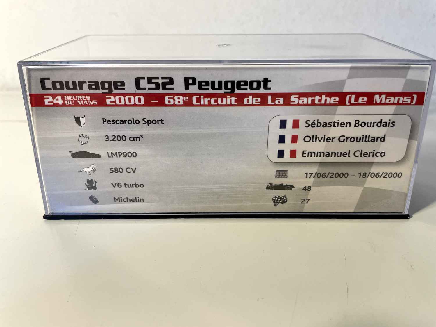 Cette Courage C52 Peugeot trouve naturellement sa place dans toute collection dédiée aux voitures miniatures de course et particulièrement aux prototypes d'endurance du début des années 2000. Elle s'inscrit parfaitement aux côtés d'autres modèles emblématiques de cette période faste, comme les Audi R8 ou les prototypes Peugeot de la même époque.