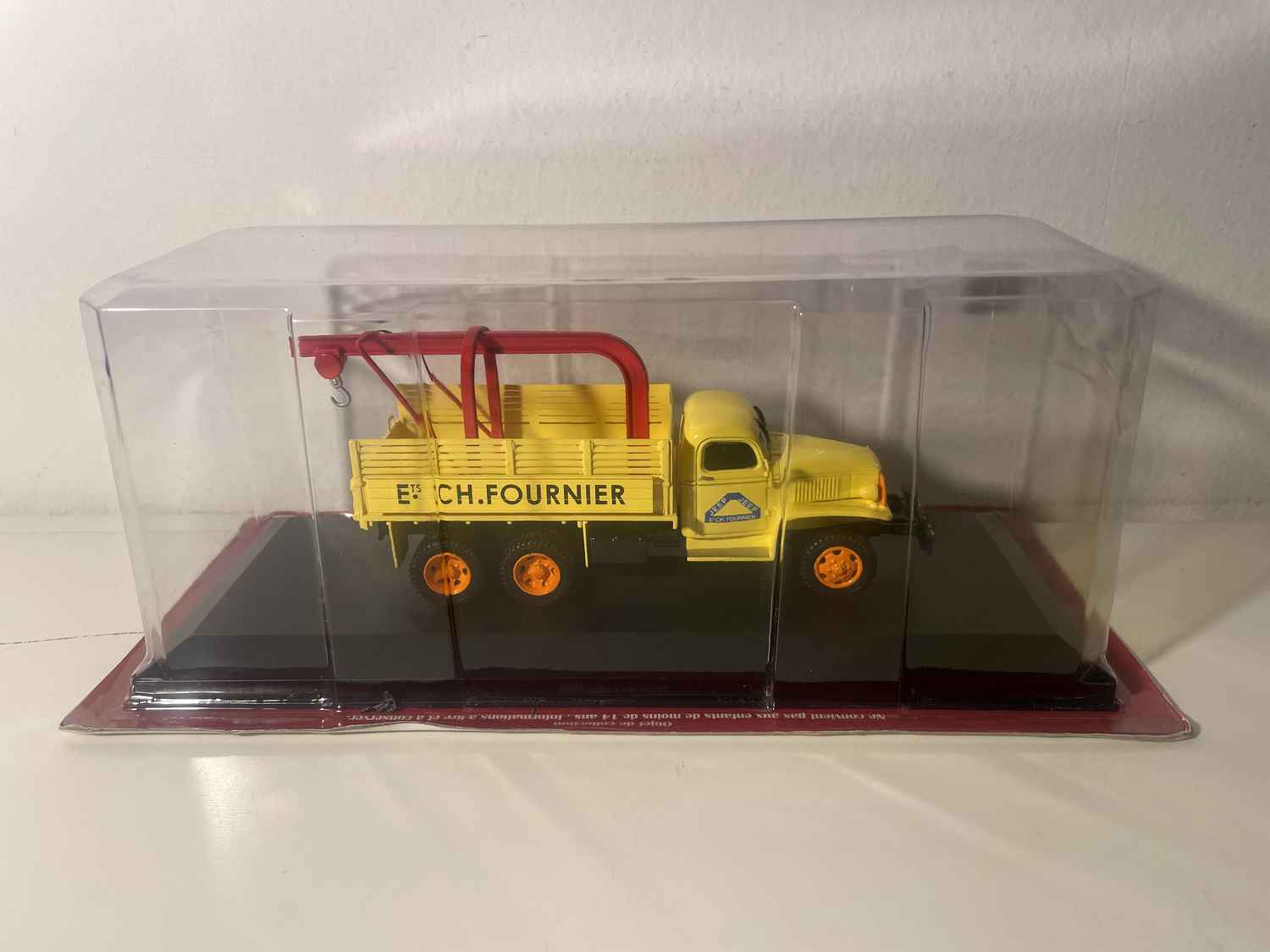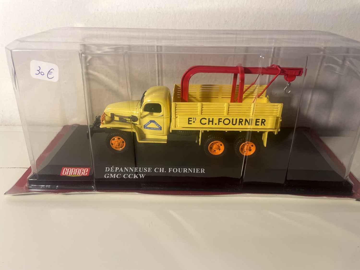 Voici une miniature authentique qui ravira les passionnés de véhicules utilitaires d'époque : la dépanneuse GMC CCKW jaune des Établissements Ch. Fournier. Cette reproduction fidèle d'un véhicule emblématique des années d'après-guerre s'inscrit dans la prestigieuse Collection Garage Moderne, reconnue pour la qualité de ses modèles réduits dédiés aux véhicules de service.