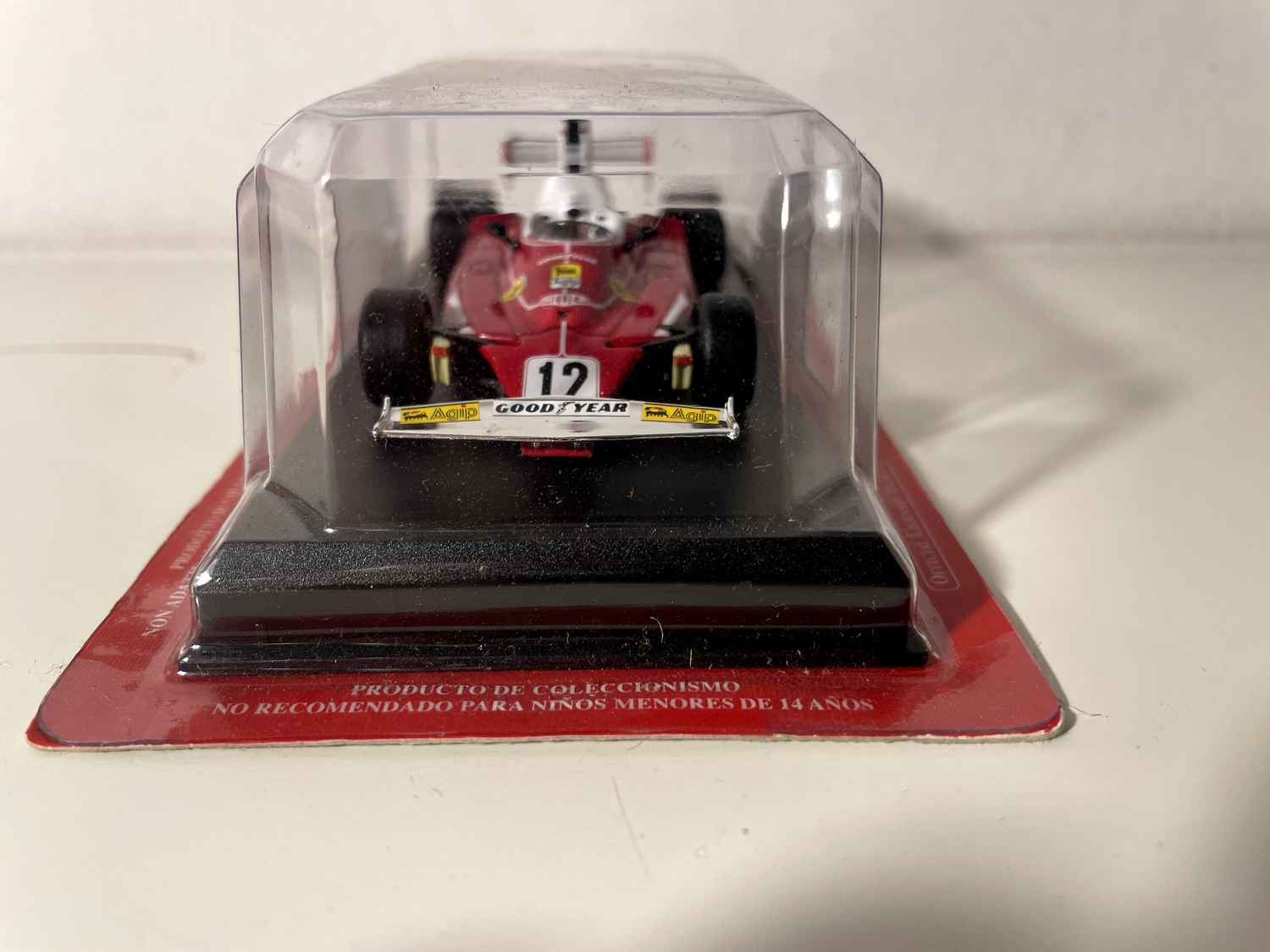 Découvrez cette superbe miniature de la Ferrari 312T rouge et blanche numéro 12, fidèle reproduction de la légendaire monoplace de Formule 1 pilotée par Niki Lauda. Cette pièce d'exception, éditée par Altaya, capture toute l'essence de l'une des Ferrari les plus emblématiques de l'histoire de la F1.