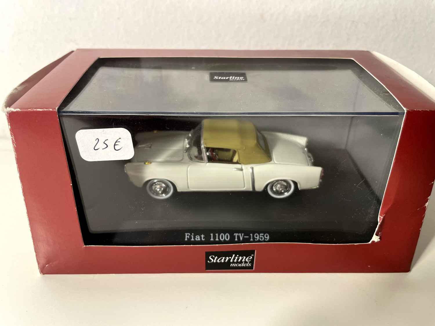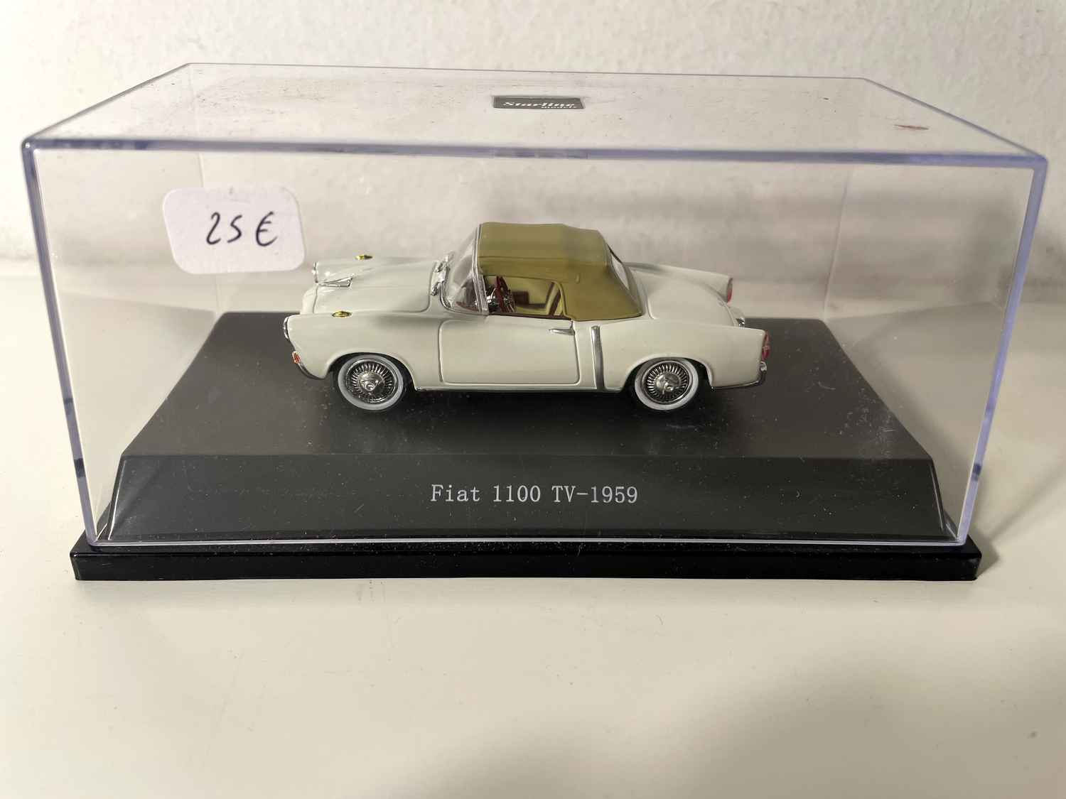 Voiture Miniature Fiat 1100 TV blanche et capote marron de 1959 - collection Starline models